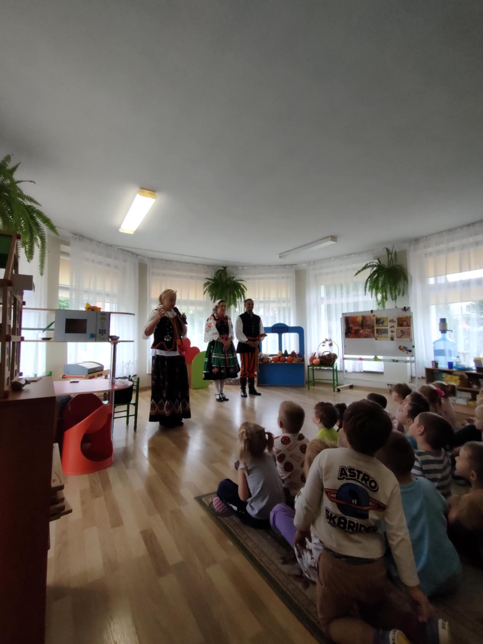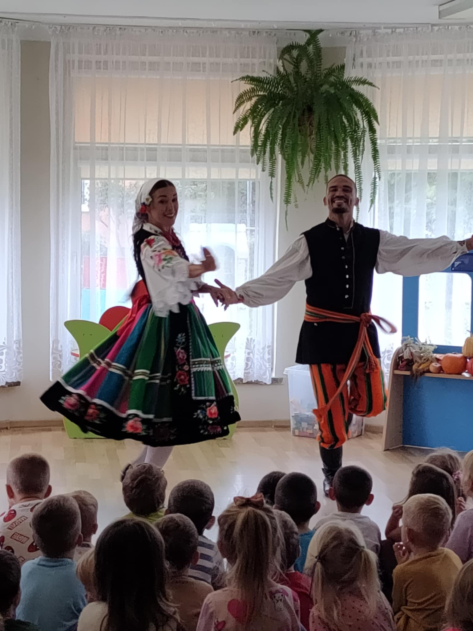 Jak zawsze uwielbiamy zajęcia prowadzone przez muzyków z filharmonii łódzkiej. Tym razem było to spotkanie z kulturą ludową w postac tańców: krakowiaka, kujawiaka, polki i oberka. Pani Małgosia przedstawiła nam parę taneczną, która w przepiękny sposób pokazała dzieciakom jak się tańczy wymienione, polskie tańce ludowe.