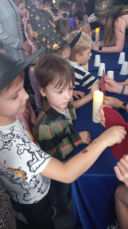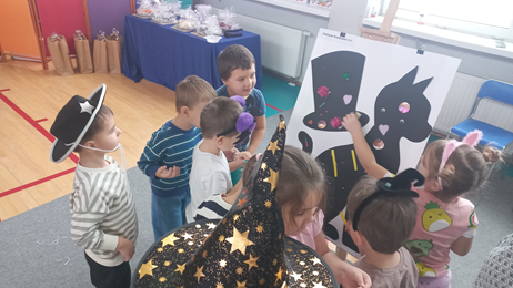 W środę 26 listopada dzieci z grupy Słoneczka uczestniczyły w Andrzejkowym Dniu Integracji w Publicznej Szkole Podstawowej nr 3 w Radomsku. W zabawach uczestniczyli uczniowie z klas I-III oraz dzieci z Publicznych Przedszkoli nr 2, 3,10 i Przedszkola Specjalnego. Były andrzejkowe wróżby i pokaz iluzjonisty. Przedszkolaki ozdabiały postać czarnego kota i magiczny cylinder. Po tych zadaniach nadszedł czas na szalone, wspólne tańce.