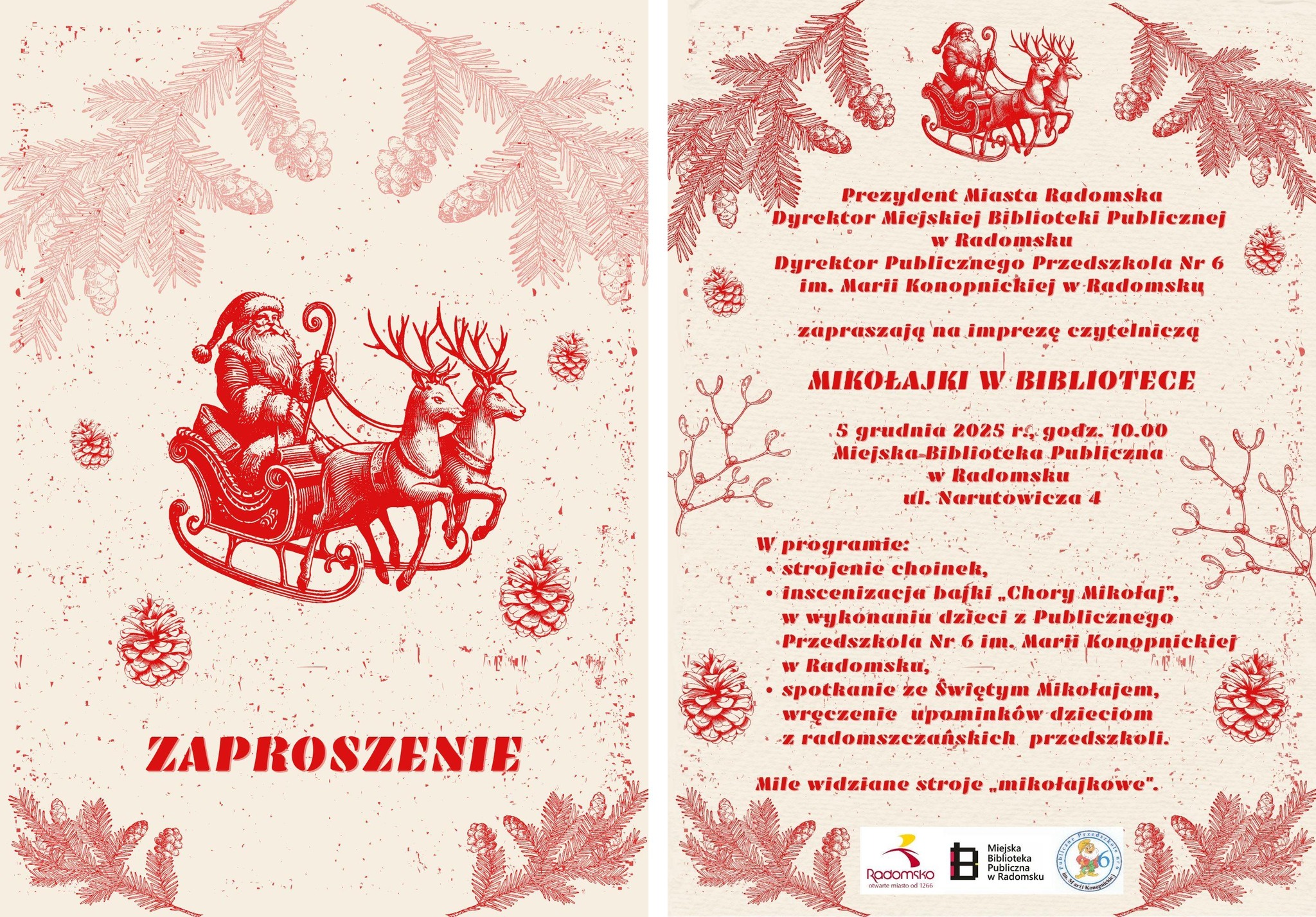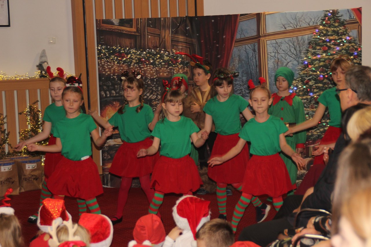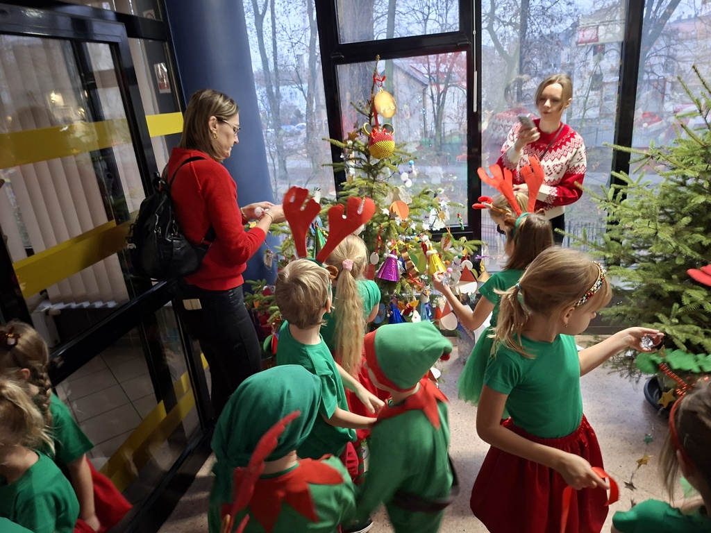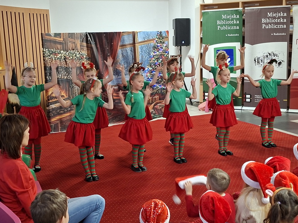 Jak co roku Miejska Biblioteka Publiczna w Radomsku we współpracy z naszym przedszkolem zorganizowała spotkanie ze Świętym Mikołajem. W piątek 5 grudnia w bibliotece pojawiły się maluchy ze wszystkich radomszczańskich przedszkoli. To zabawa, którą organizujemy już od kilku lat. Dla dzieci przygotowujemy wówczas niespodziankę- wizytę Świętego Mikołaja ze Śnieżynką! Prezenty otrzymują wszystkie dzieci. Wcześniej jednak przedszkolaki ozdabiały choinki własnoręcznie przygotowanymi ozdobami. Każde przedszkole miało swoje drzewko. Następnie przed swoimi rówieśnikami w krótkim mikołajkowym przedstawieniu pt. ”Chory Mikołaj” zaprezentowały się pięknie dzieci z naszego kółka teatralnego zbierając zasłużone oklaski. Burza oklasków wybuchła też na widok Świętego Mikołaja, który przywitał się z maluchami, pogawędził z nimi i rozpoczął rozdawanie prezentów!