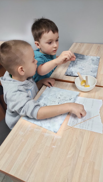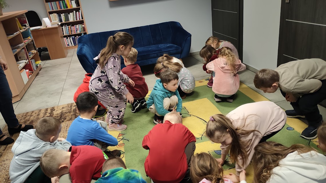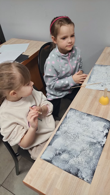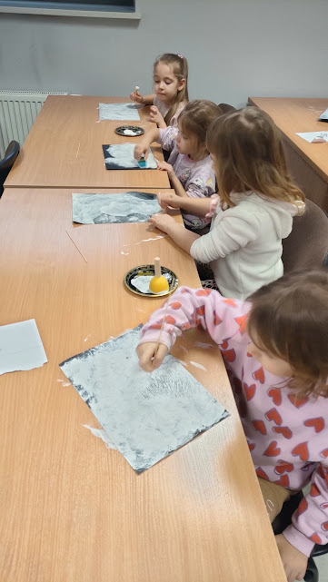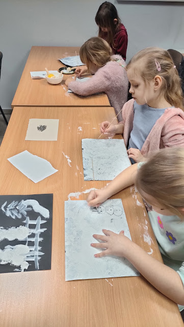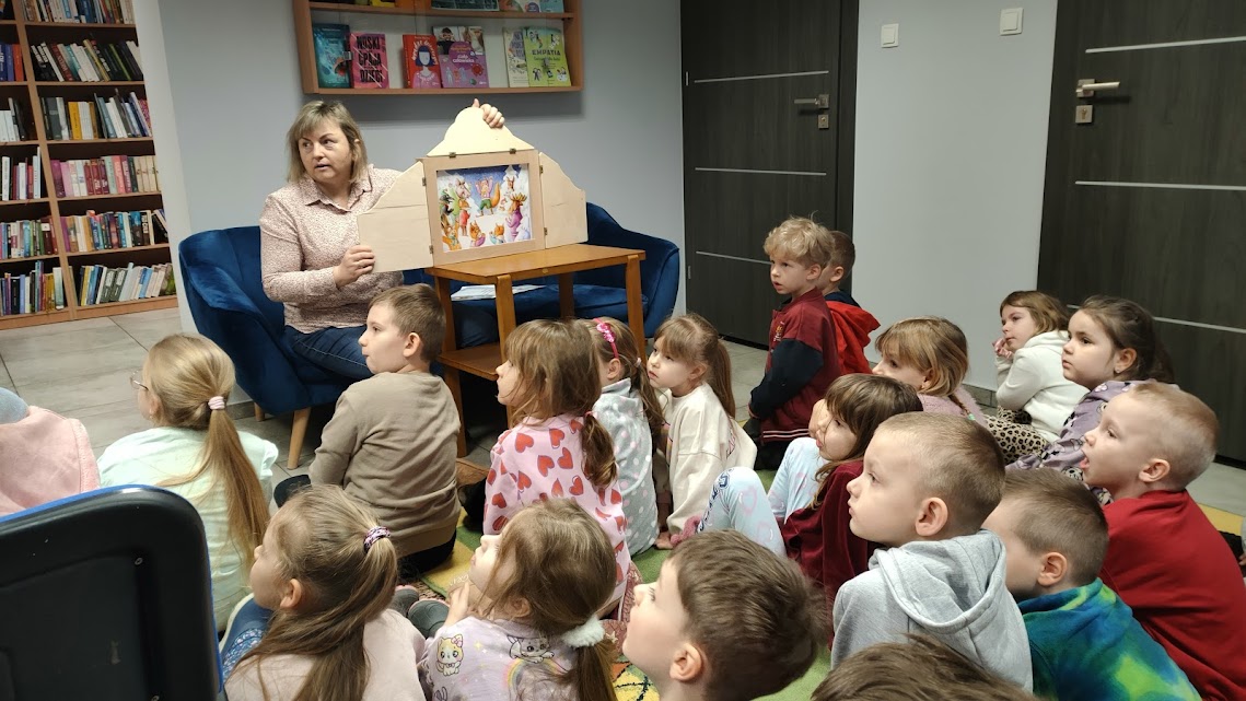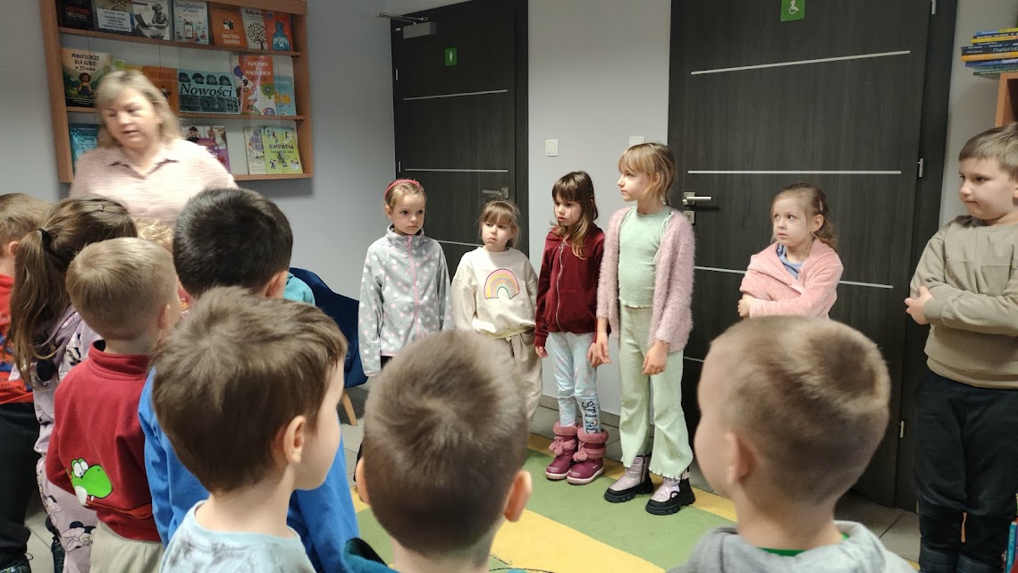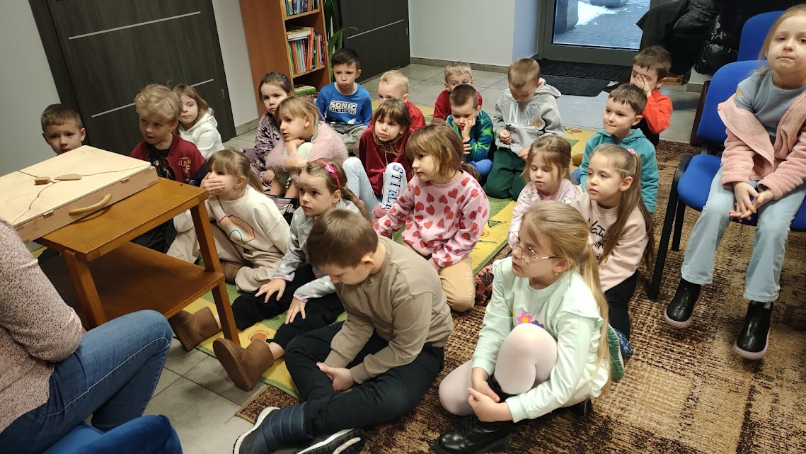 Dziś odwiedziliśmy nasze ulubione panie w zaprzyjaźnionej bibliotece pedagogicznej, gdzie rozmawialiśmy o tym jak czerpać radość z zimy podczas ferii nie zapominając o bezpieczeństwie. W czasie spotkania pani Anetka zaprezentowała nam teatrzyk kamishibai pt. „Zimowe opowieści”. W drugiej części spotkania Motylki i Słoneczka wesoło bawiły się z panią na dywanie, po czym wykonały piękne zimowe pejzaże. Dziękujemy za tę dawkę pozytywnej energii i do zobaczenia.