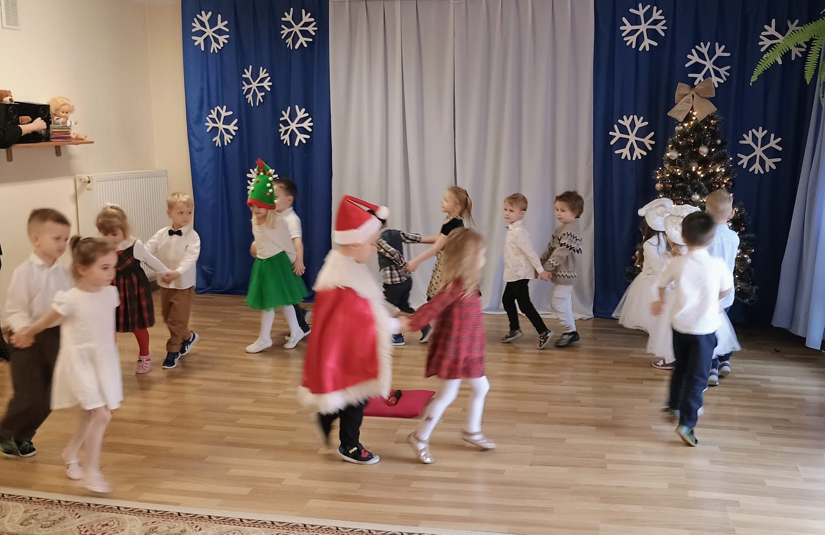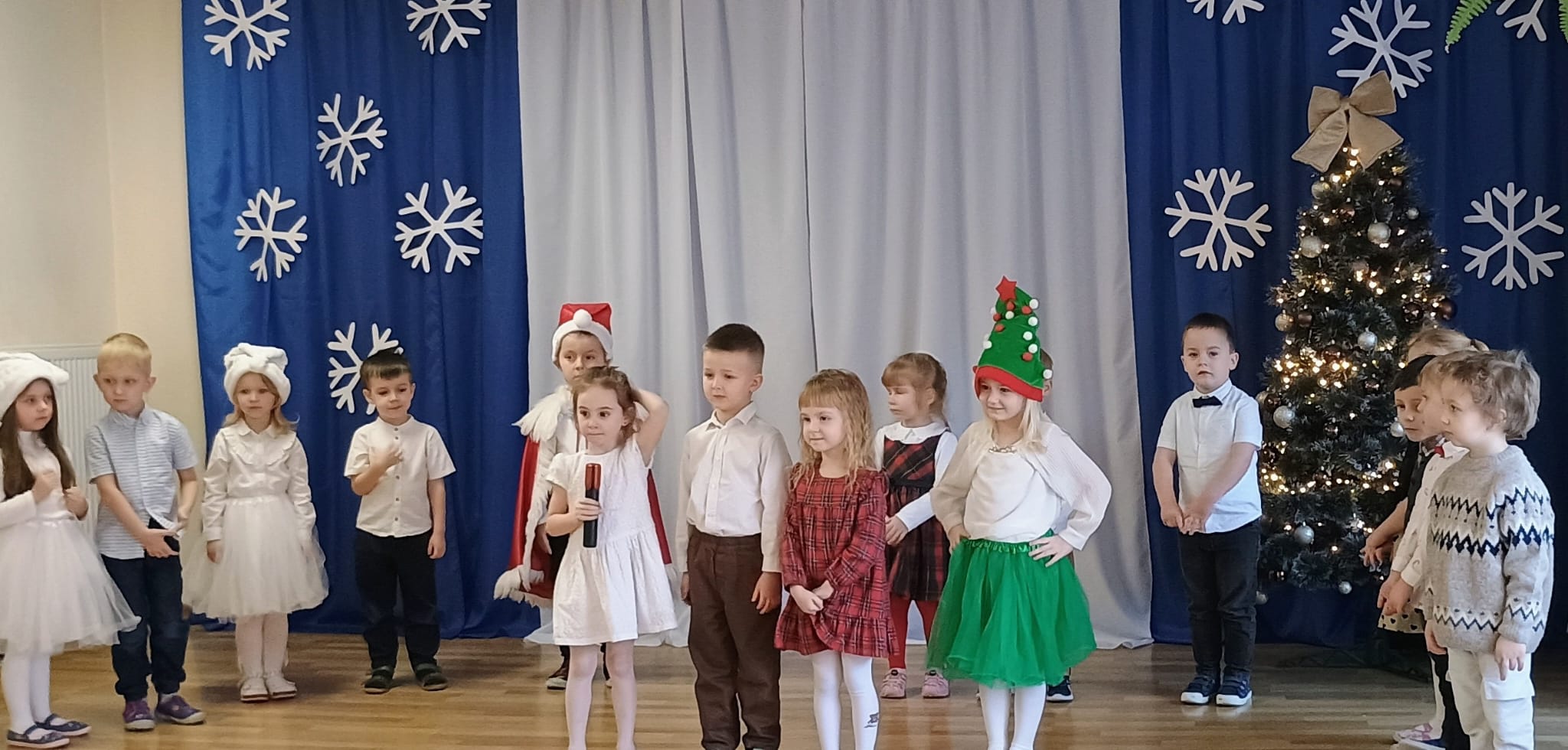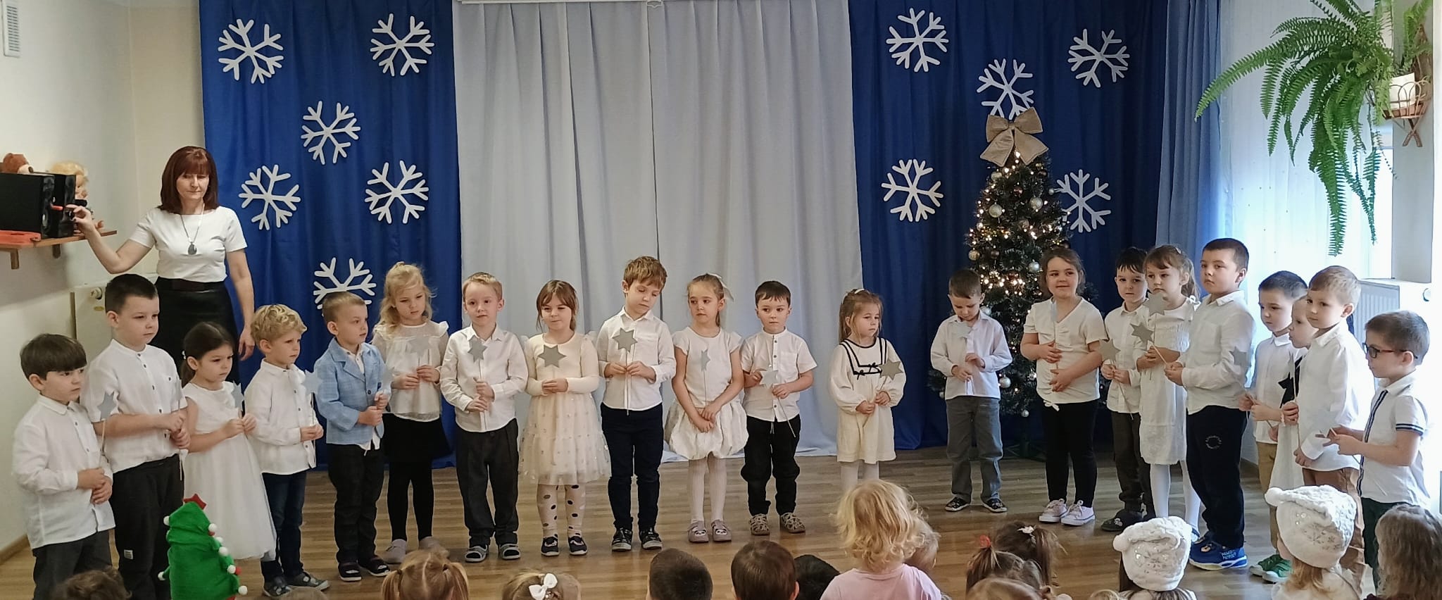 Wigilia to jeden z najpiękniejszych dni w roku, na który czekamy z niecierpliwością i przeżywamy go uroczyście. W naszym przedszkolu dzieci co roku poznają tradycje i zwyczaje świąteczne oraz chętnie uczestniczą w bożonarodzeniowych przygotowaniach. W dniu dzisiejszym w całym przedszkolu panowała radosna, ożywiona atmosfera. Świąteczne dekoracje oraz dzieci w odświętnych strojach wprowadzały nastrój oczekiwania na wyjątkowe, niecodzienne wydarzenia. Jagódki przygotowały dla wszystkich piękne kolędy i wierszyki, a dzieci z poszczególnych grup śpiewały kolejno kolędy. Po występie Pani Dyrektor złożyła wszystkim obecnym najlepsze życzenia. Przedszkolaki i pracownicy wspólnie zjedli tradycyjny wigilijny obiad. Wszystkie dzieci czuły zbliżające się wielkimi krokami Święta Bożego Narodzenia. Pięknych i zdrowych świąt!