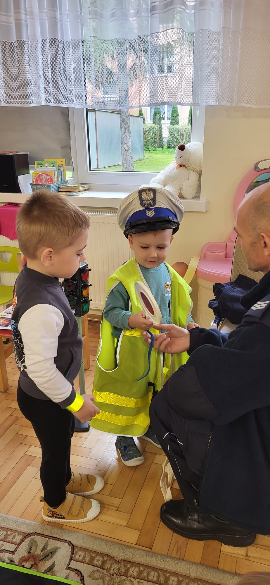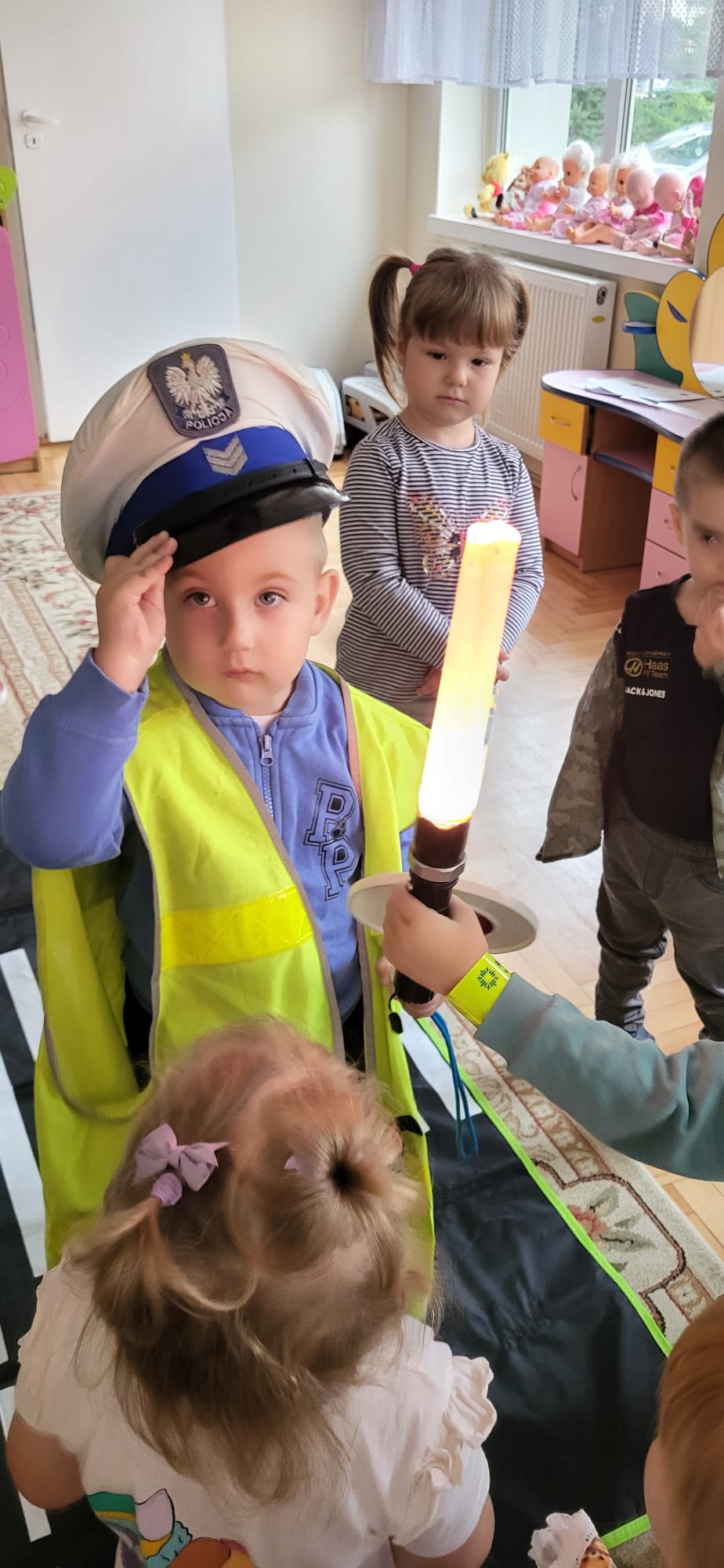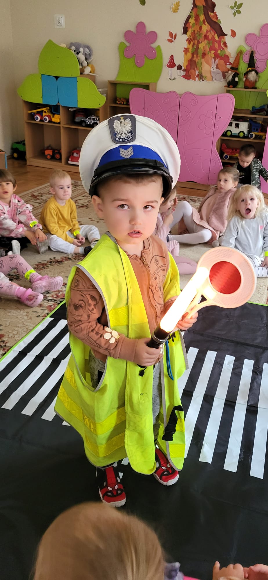 30 września Pszczółki uroczyście obchodziły Dzień Chłopaka. W tym dniu na naszych zajęciach był obecny pan policjant. Dzieci poznawały zasady bezpiecznego przejścia przez jezdnię pod okiem pana policjanta. Celem zajęć było budowanie świadomości bezpieczeństwa dzieci, wpajanie im zasad bezpiecznego poruszania się po drodze, a także budowanie zaufania do funkcjonariusza policji jako osoby, do której można zwrócić się o pomoc.
