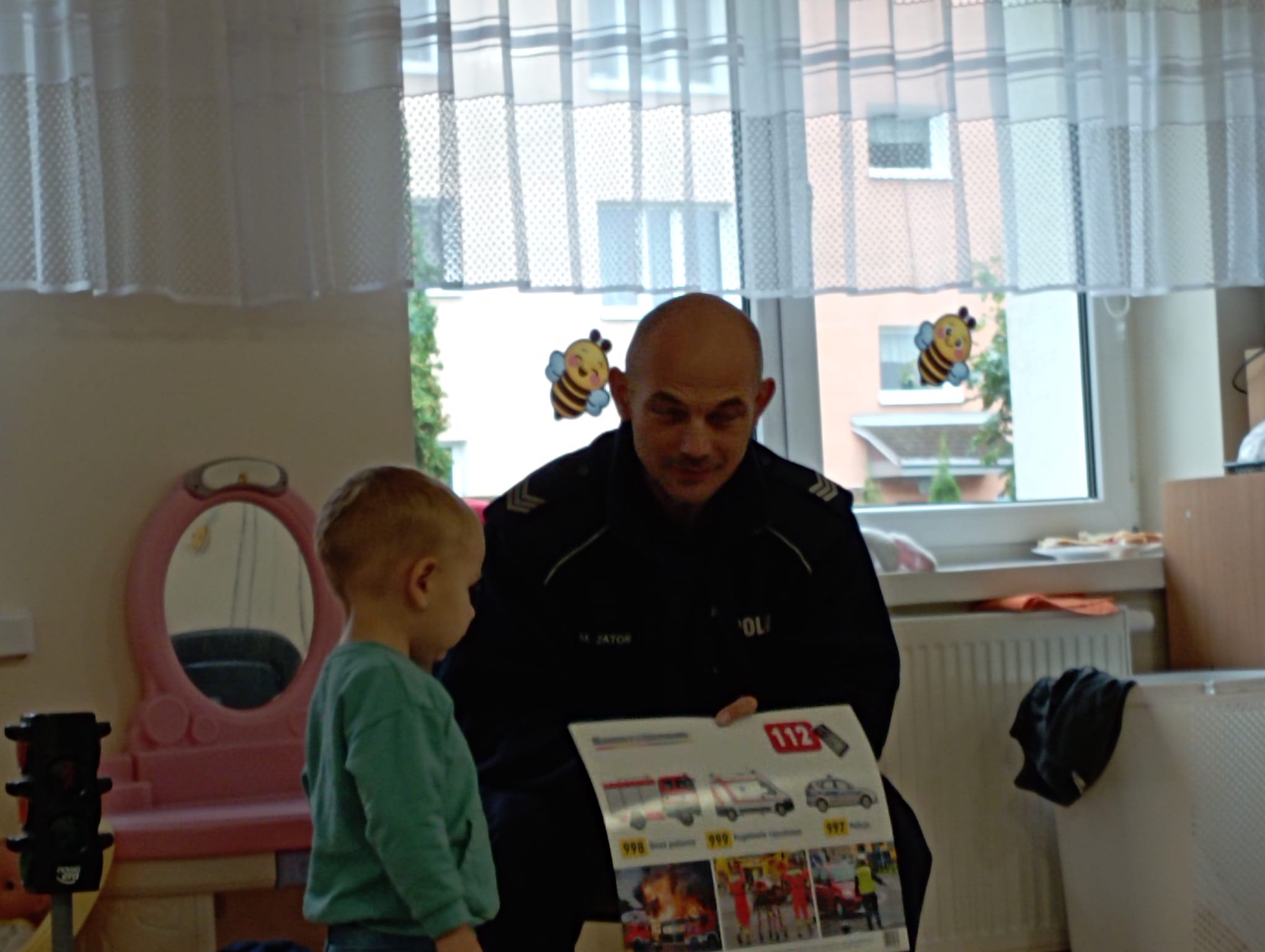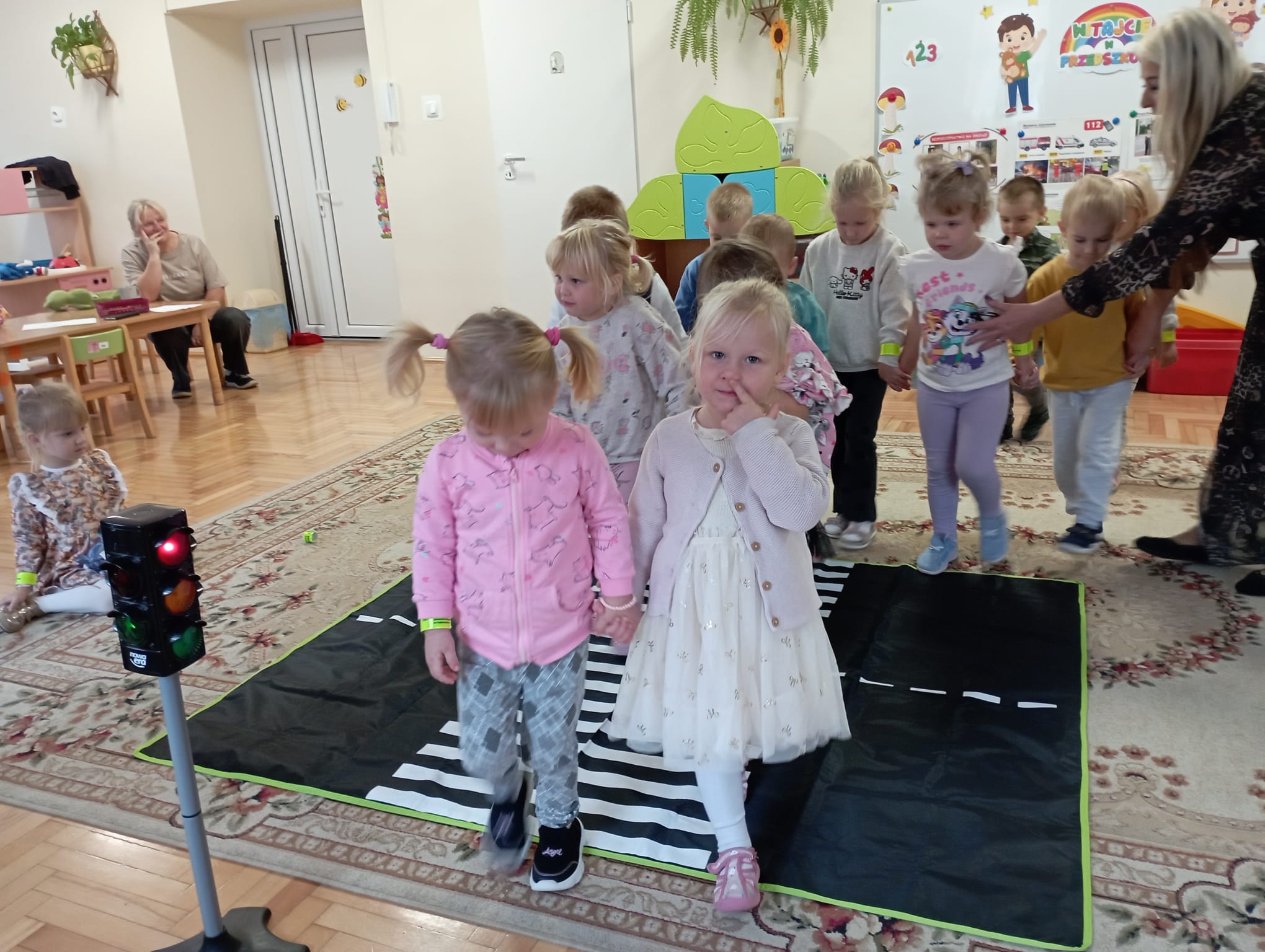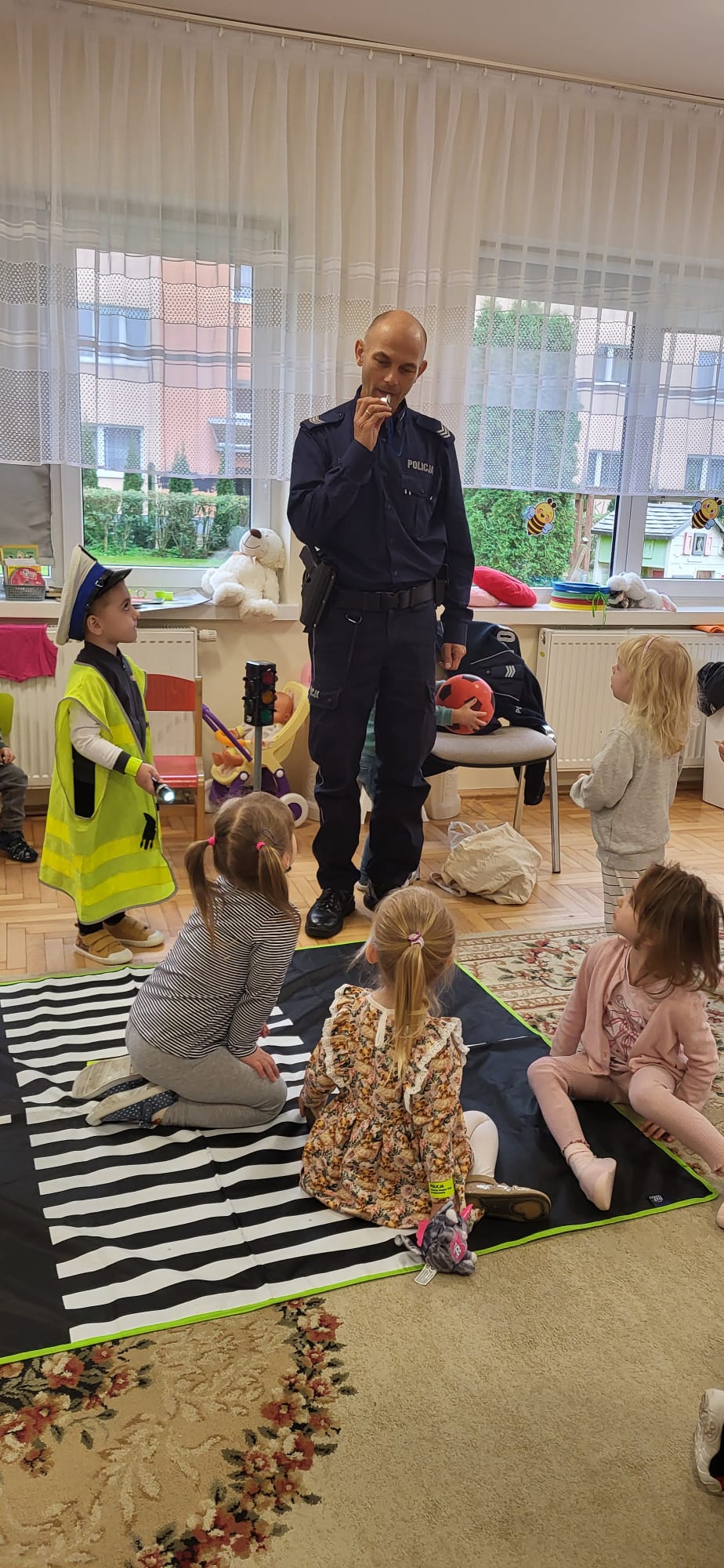 30 września Pszczółki uroczyście obchodziły Dzień Chłopaka. W tym dniu na naszych zajęciach był obecny pan policjant. Dzieci poznawały zasady bezpiecznego przejścia przez jezdnię pod okiem pana policjanta. Celem zajęć było budowanie świadomości bezpieczeństwa dzieci, wpajanie im zasad bezpiecznego poruszania się po drodze, a także budowanie zaufania do funkcjonariusza policji jako osoby, do której można zwrócić się o pomoc.