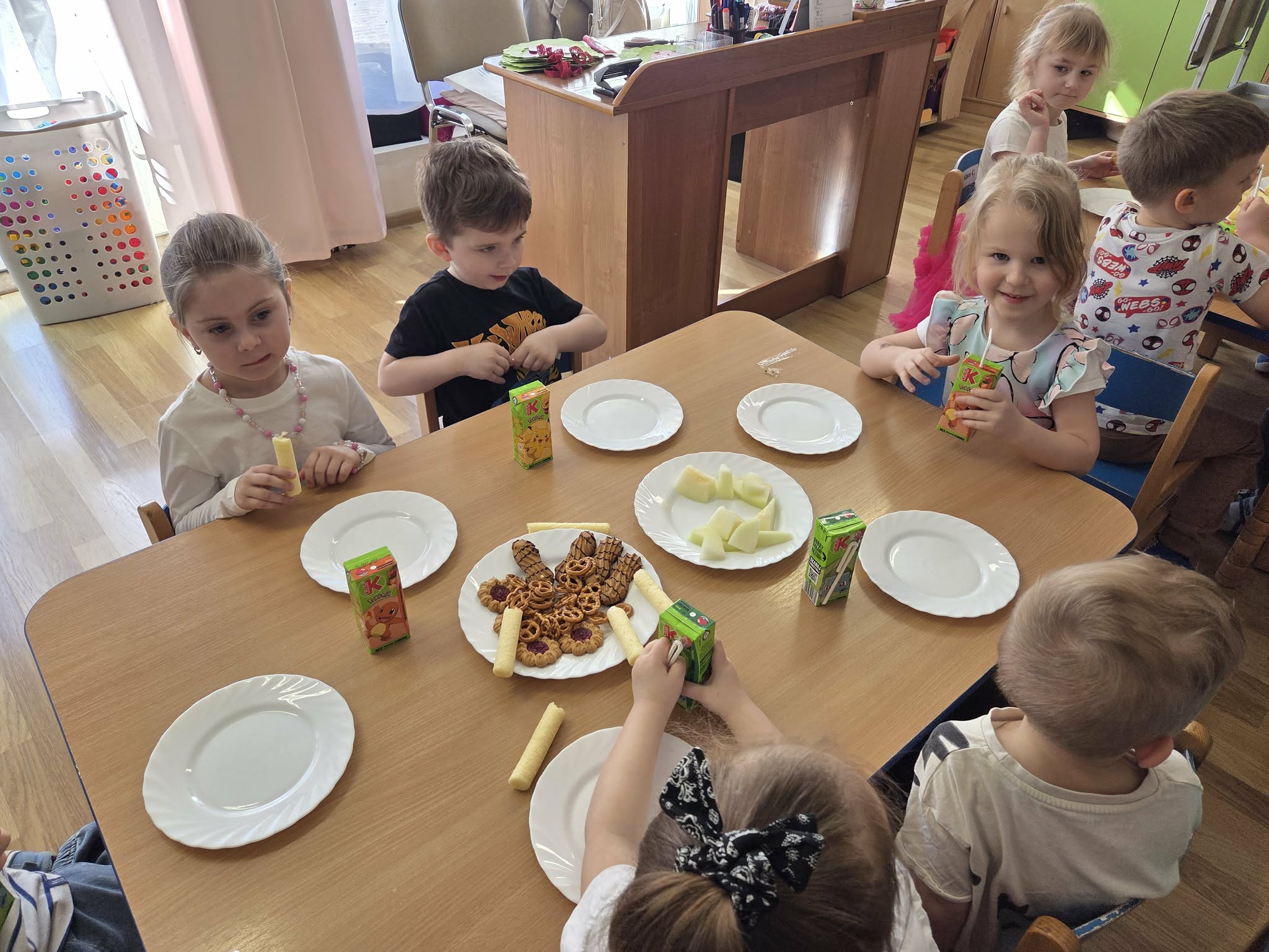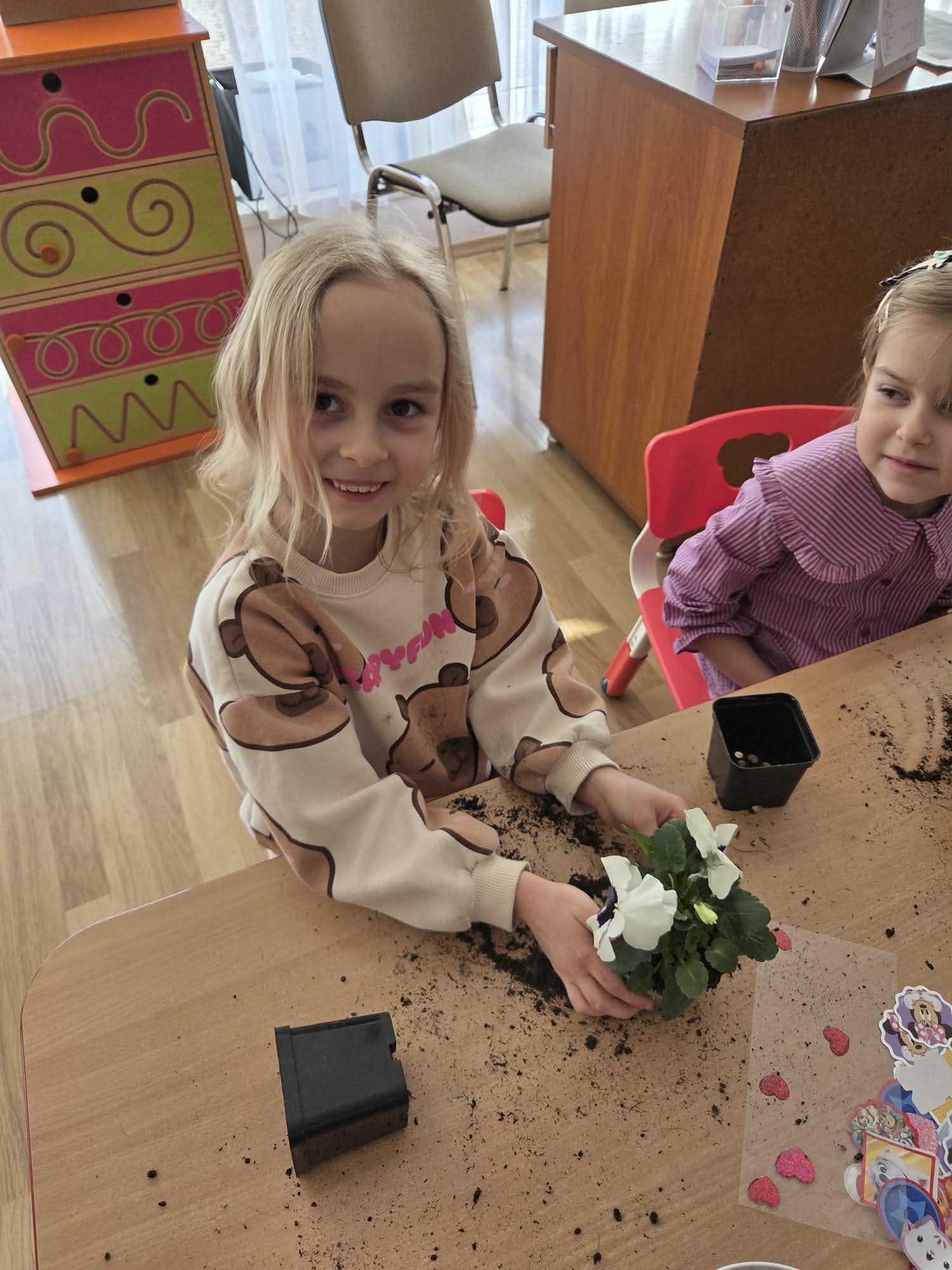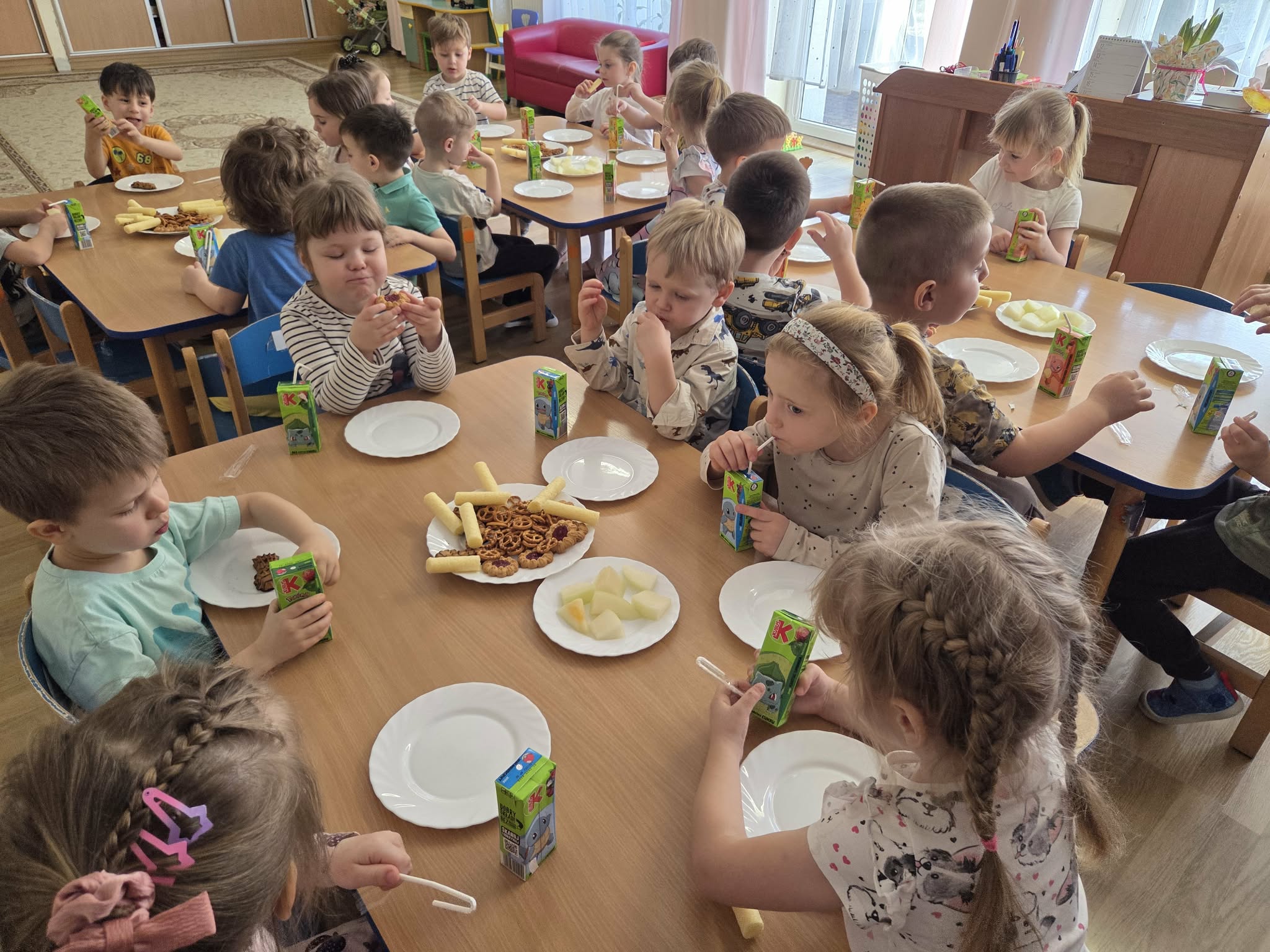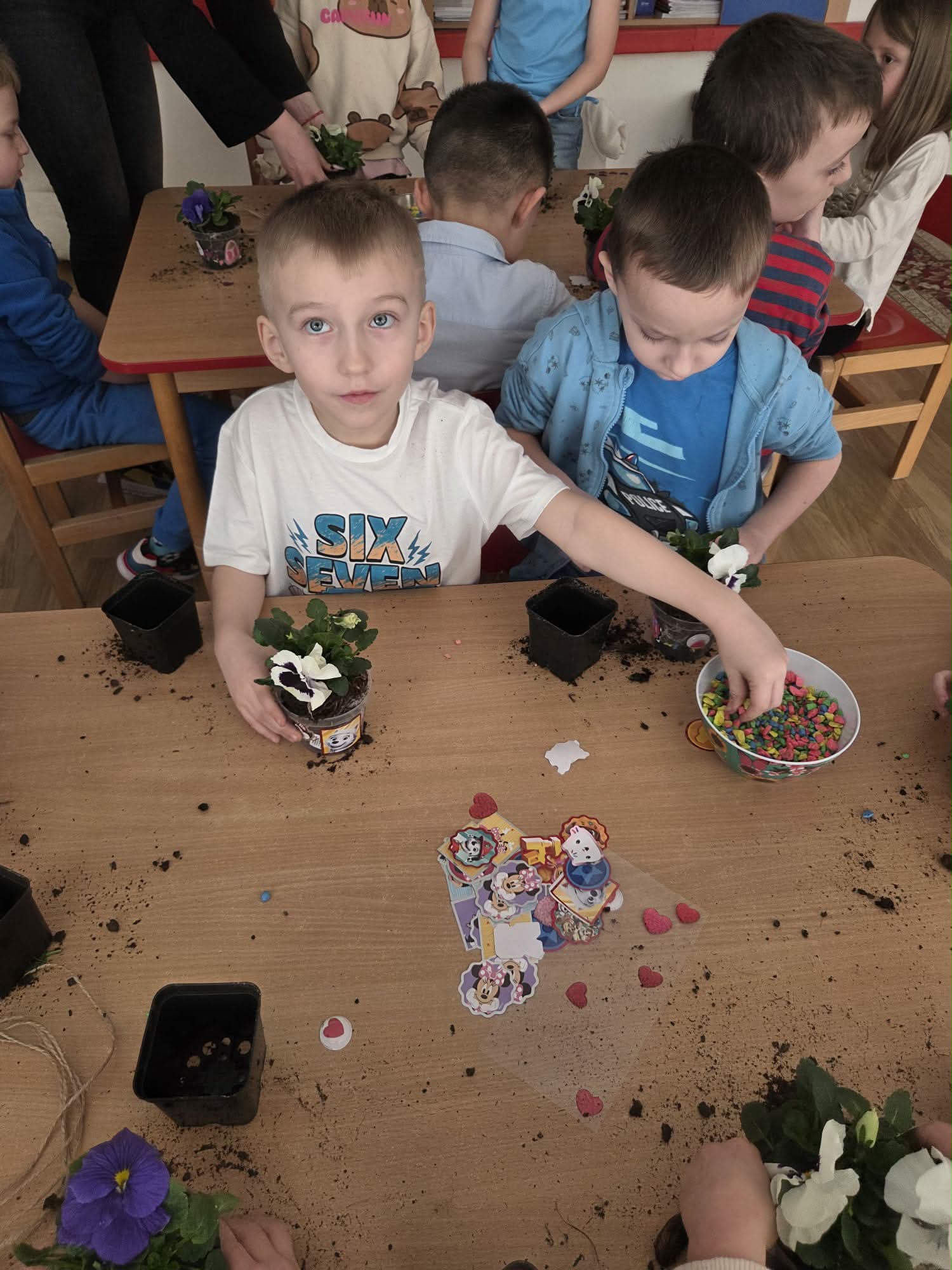 Święto Kobiet, które corocznie obchodzimy w naszym przedszkolu, to doskonały sposób do kształtowania u dzieci nawyku obdarowywania upominkami swoich najbliższych. Wszystkie kobietki, te małe i duże dziękują chłopcom za piękne życzenia.