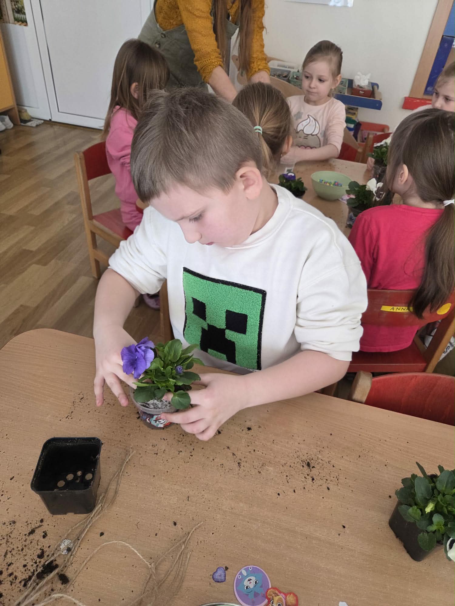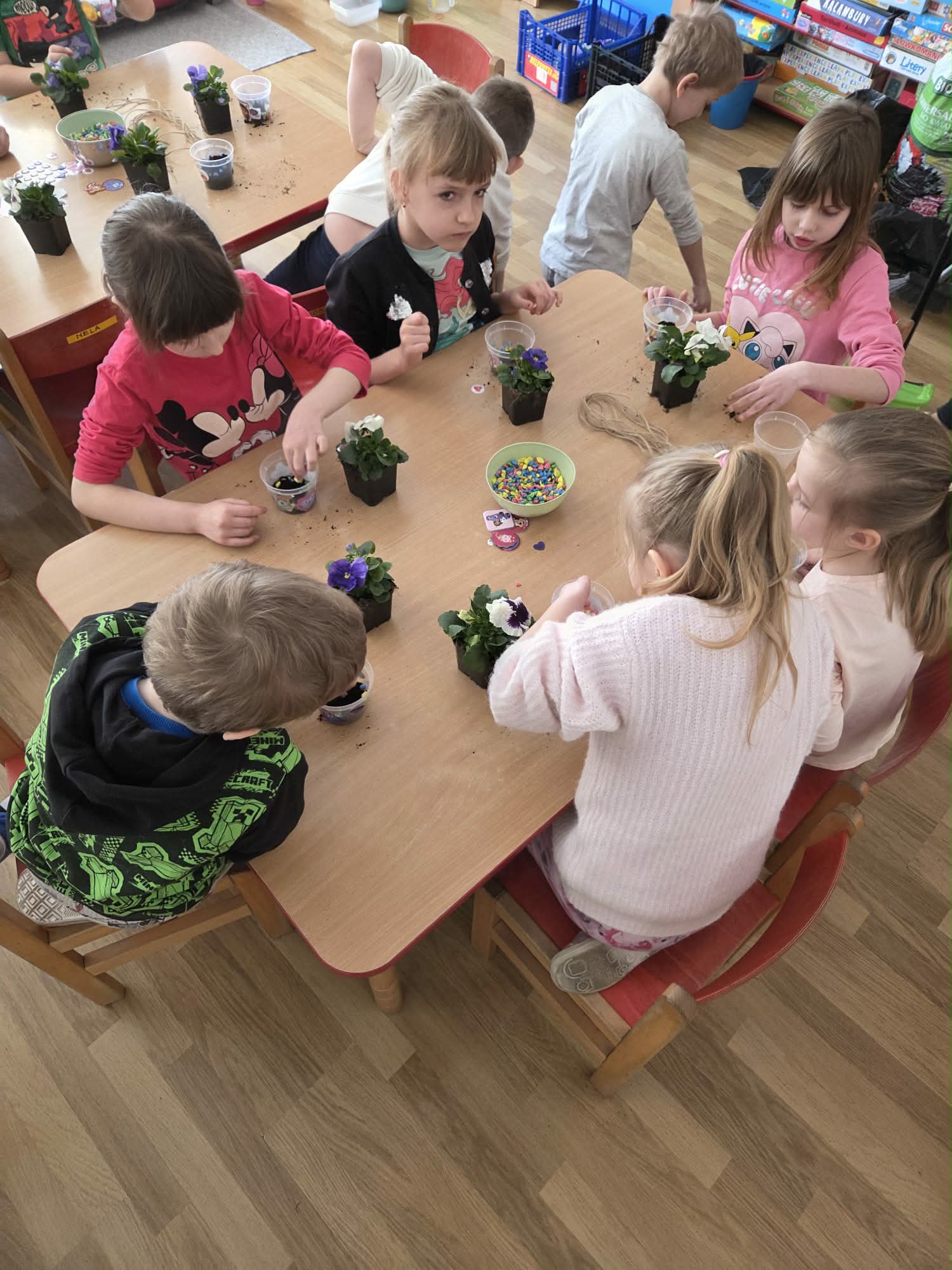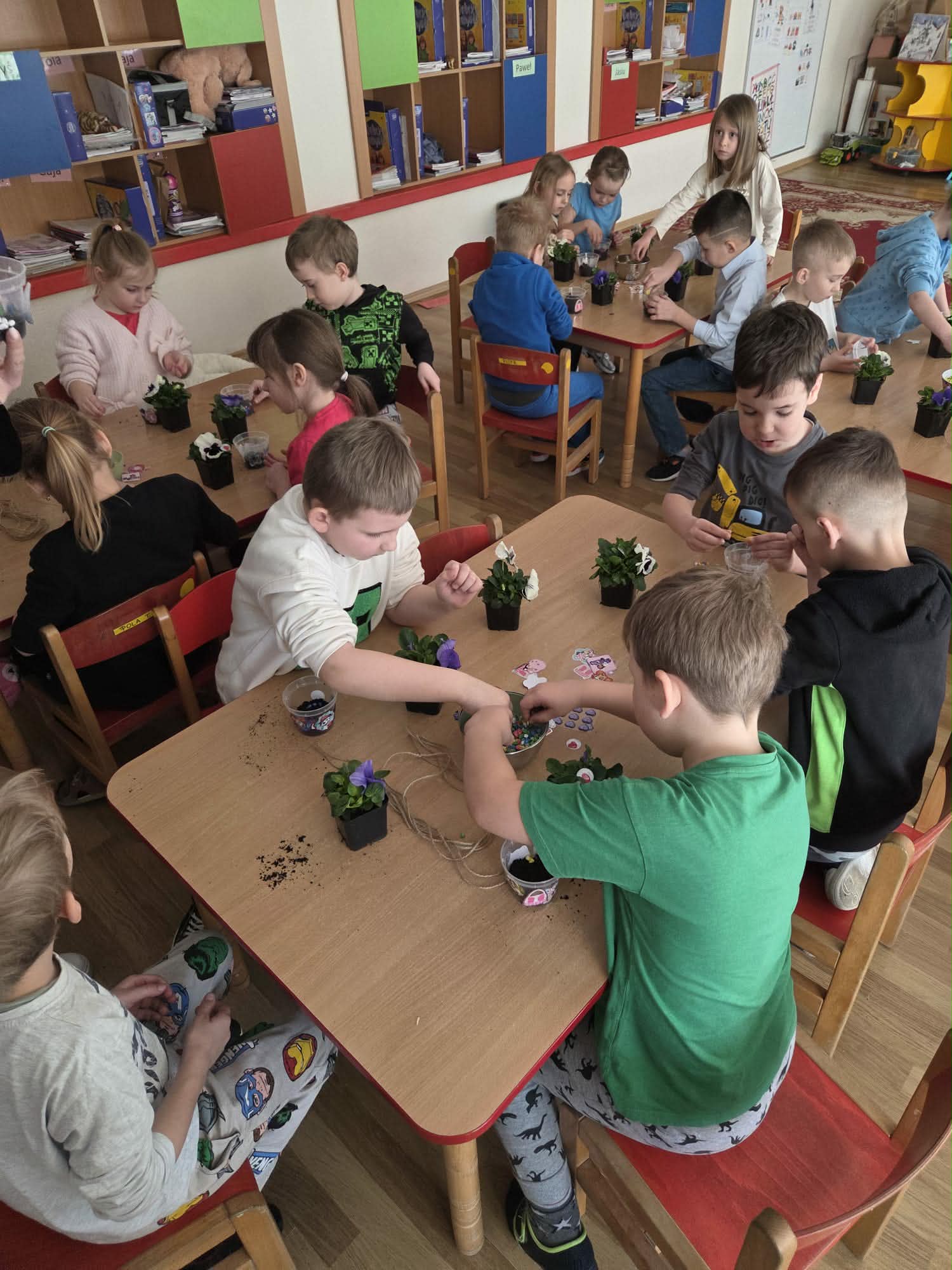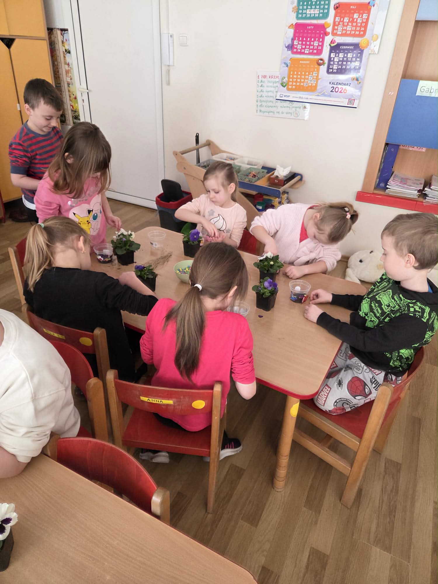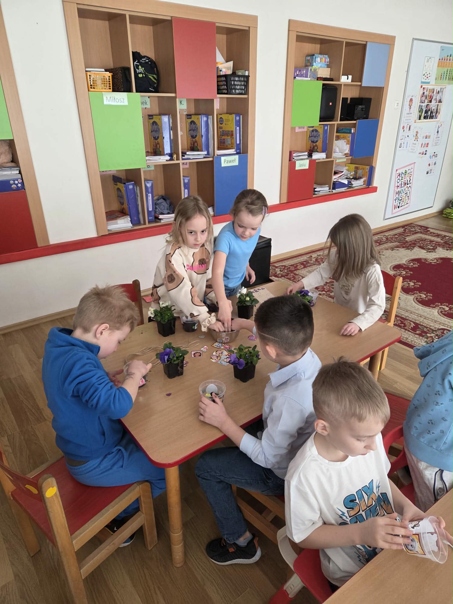 Dzień Kobiet to wyjątkowy dzień, ważny dla wszystkich kobiet zarówno tych dużych, jak i małych. We wszystkich grupach przedszkolnych odbyła się z tej okazji uroczystość. Radosna atmosfera panowała już od samego rana. W tym szczególnym dniu wszystkie kobietki otrzymały serdeczne życzenia i upominki od chłopców. Mali panowie tradycyjnie zaśpiewali swoim koleżankom uroczyste „100 lat” i wręczyli piękne laurki i niespodzianki. Chłopcy ze szczególnym zaangażowaniem starali się, aby ten dzień uczynić wyjątkowo miłym. Jako mali dżentelmeni wyręczali dziewczynki w codziennych obowiązkach między innymi w porządkowaniu sali po zabawie. Było można usłyszeć taneczną muzykę, w rytm której bawiły się zarówno dziewczynki jak i chłopcy. Wiele radości sprawiły dzieciom przygotowane z tej okazji zabawy, a nawet warsztaty sadzenia bratków w starszej grupie Motylków, zorganizowane przez rodziców. Uśmiechnięte buzie przedszkolaków, a zwłaszcza dziewczynek świadczyły o miło spędzonym czasie.