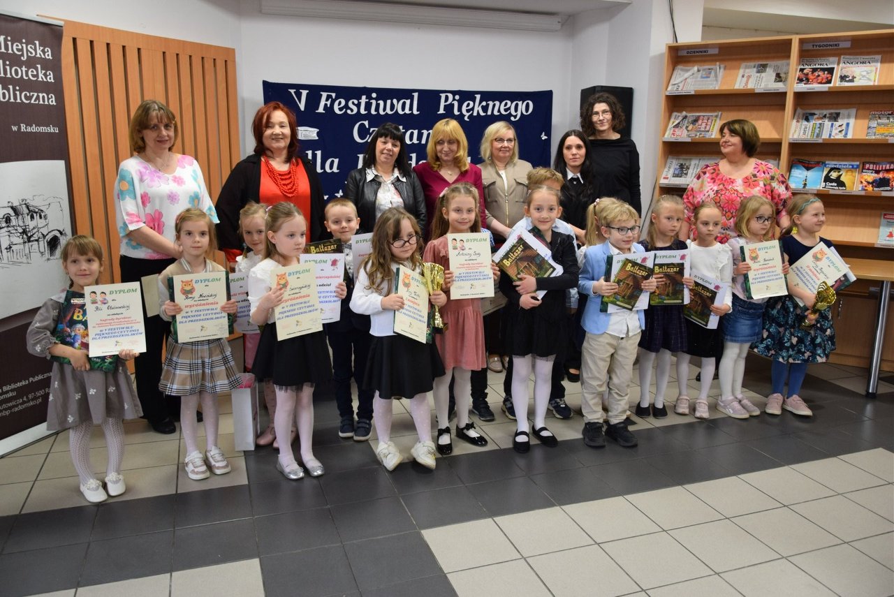 17 kwietnia br. o godz. 9.00 w Miejskiej Bibliotece Publicznej w Radomsku odbył się V Festiwal Pięknego Czytania dla Przedszkolaków, zorganizowany przez Publiczne Przedszkole nr 2 im. Janusza Korczaka w Radomsku. Wydarzenie zgromadziło najmłodszych miłośników literatury z miasta oraz powiatu radomszczańskiego. W konkursie udział wzięło 22 przedszkolaków reprezentujących 15 placówek. Zadaniem uczestników było zaprezentowanie fragmentu samodzielnie wybranego utworu literackiego. Mali czytelnicy zachwycili publiczność i jury swoimi umiejętnościami oraz interpretacją tekstów. Występy oceniało jury w składzie: przewodnicząca Anita Pawlak-Zygma, Joanna Wideryńska, Joanna Dudek, Renata Barwaśna-Kowalczyk oraz gość specjalny – Katarzyna Wasilkowska, autorka książek dla dzieci i młodzieży. Jak podkreślali jurorzy, wybór laureatów nie był łatwy, gdyż wszystkie dzieci były bardzo dobrze przygotowane. Uczestnicy, a wśród nich nasze dziewczynki z grupy „Motylki”- Maja Młyńczak i Tosia Więcek, zostali nagrodzeni książkami z autografem Katarzyny Wasilkowskiej. Uroczystego wręczenia nagród i wyróżnień dokonała wiceprezydent miasta Małgorzata Kańska-Kipigroch.