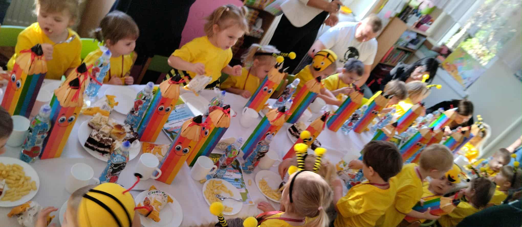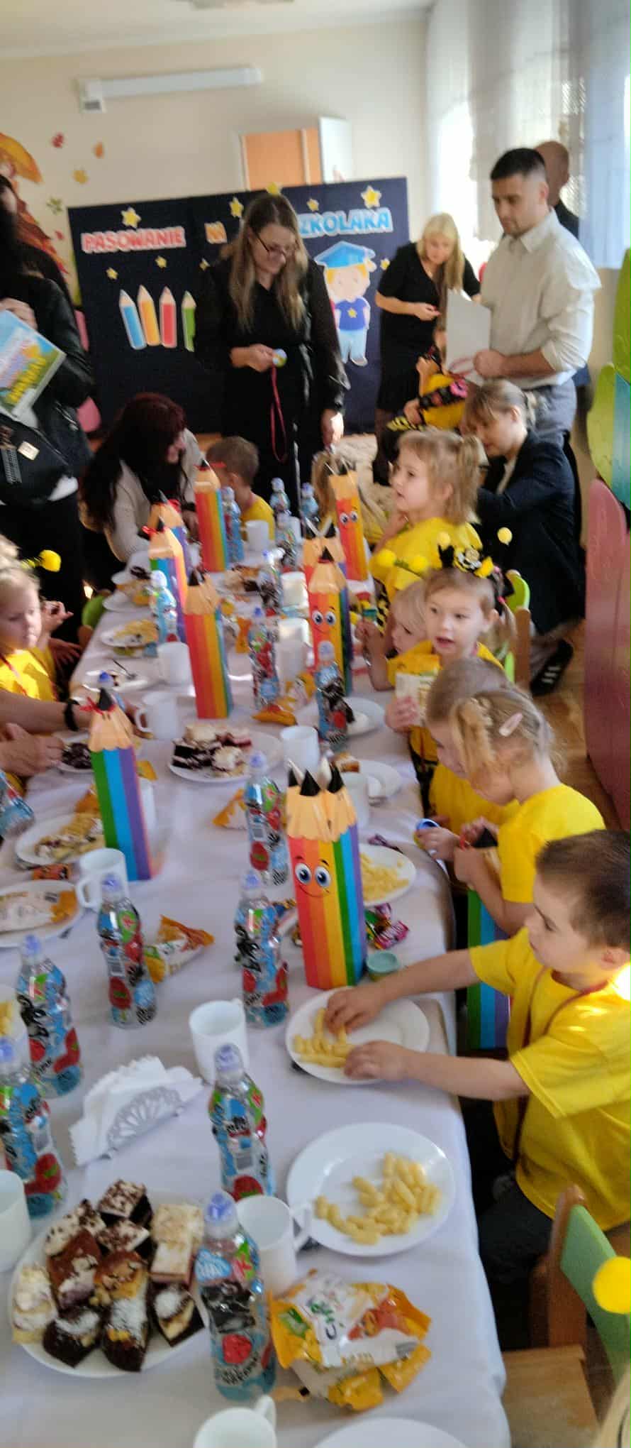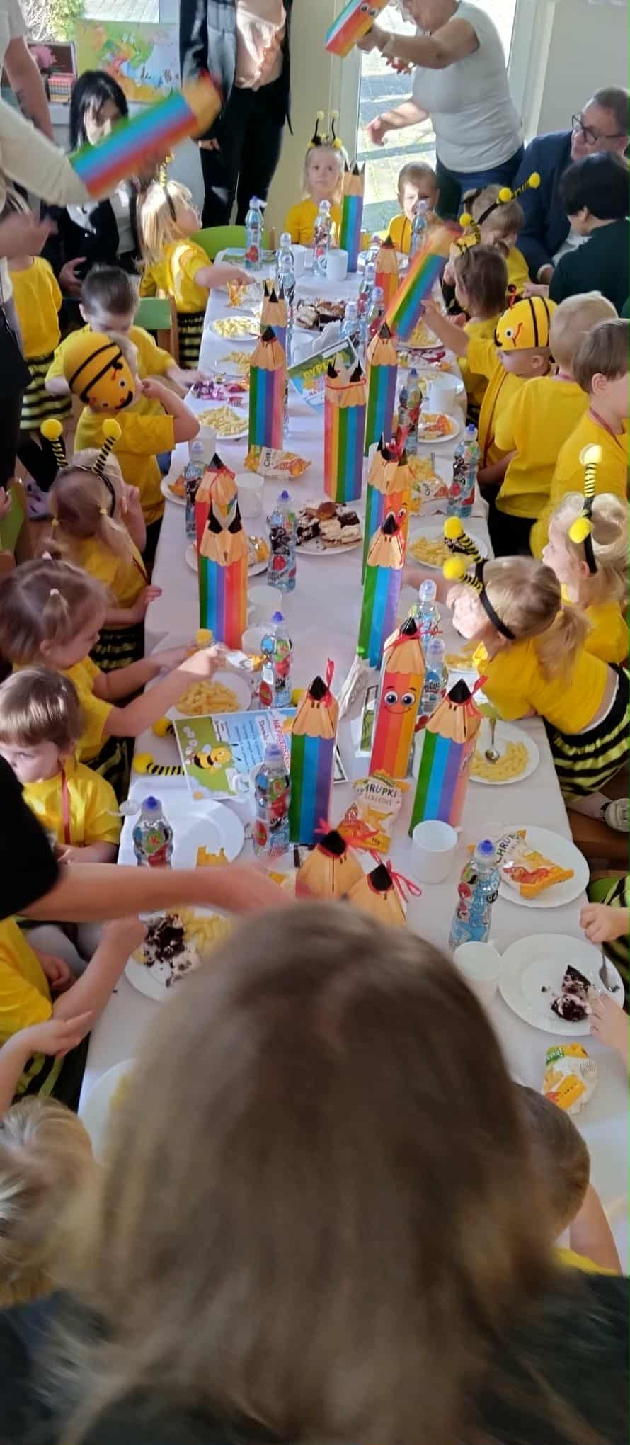 06 listopada 2025 r. w grupie 3-latków odbyło się Uroczyste Pasowanie na Przedszkolaka naszych kochanych maluszków oraz ceremonia ślubowania i nadanie imienia "Pszczółki" najmłodszej grupie. Występ 3-latków poprzedził występ 6-latków z grupy Motylków. Dzieci zaprezentowały dla wszystkich gości wspaniały, żywiołowy taniec i piosenkę. Następnie maluszki zaprezentowały krótki występ, który przygotowały, złożyły uroczystą przysięgę, a następnie za pomocą "czarodziejskiej kredki" zostały pasowane przez Panią Dyrektor na Przedszkolaka. Nie zabrakło życzeń, słodkich upominków oraz kolorowych dyplomów.