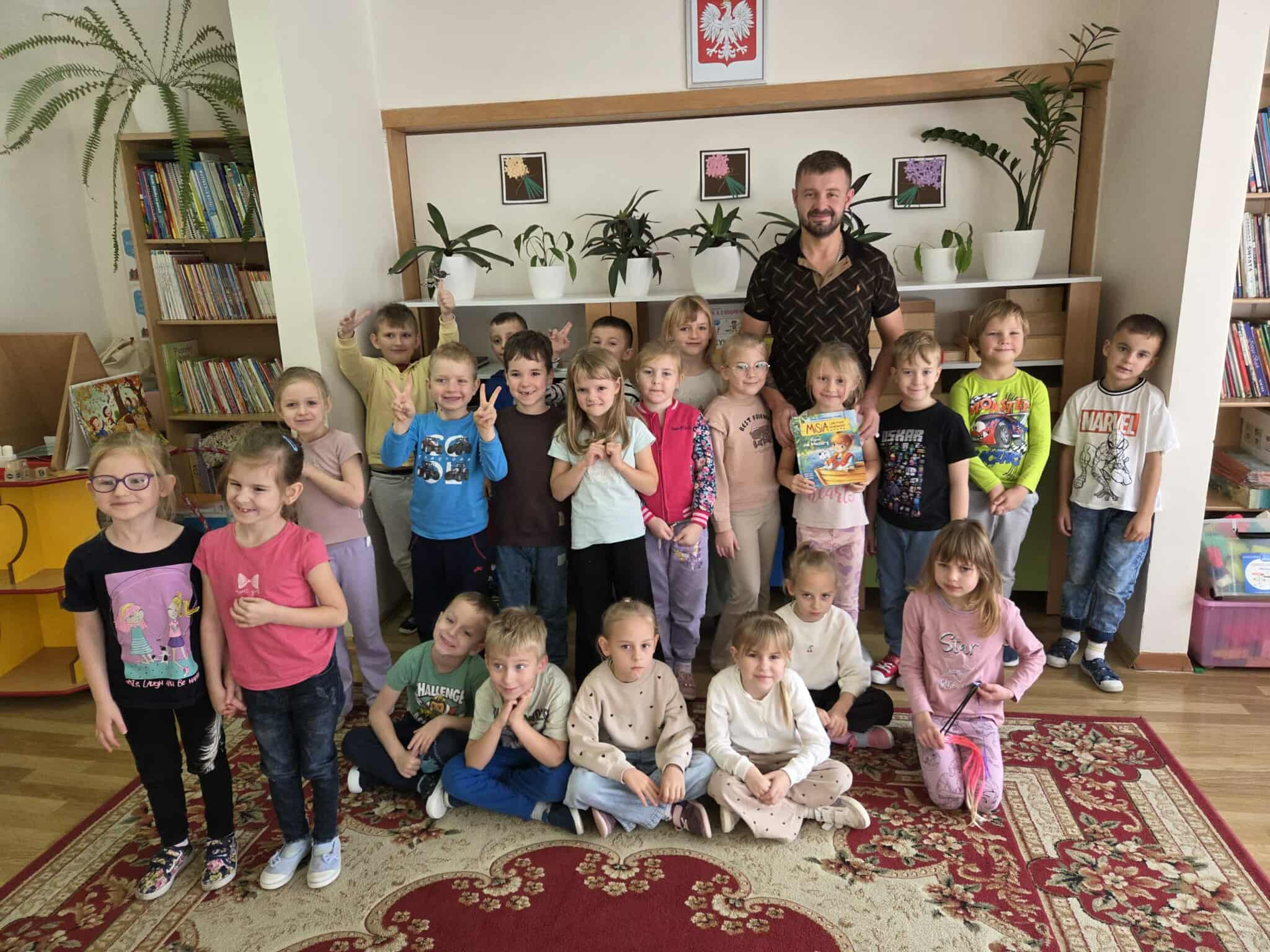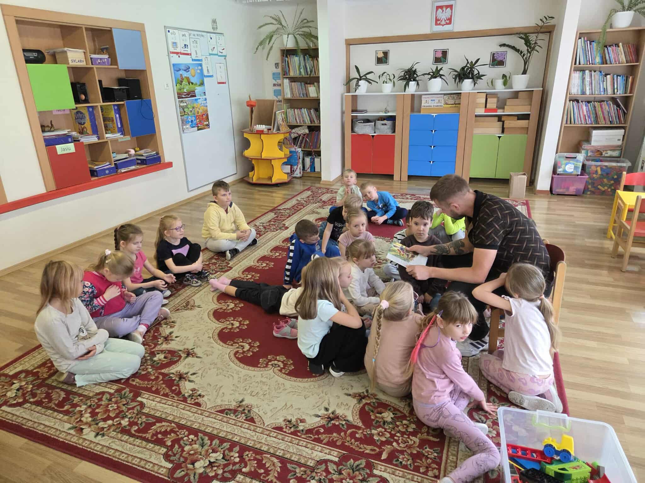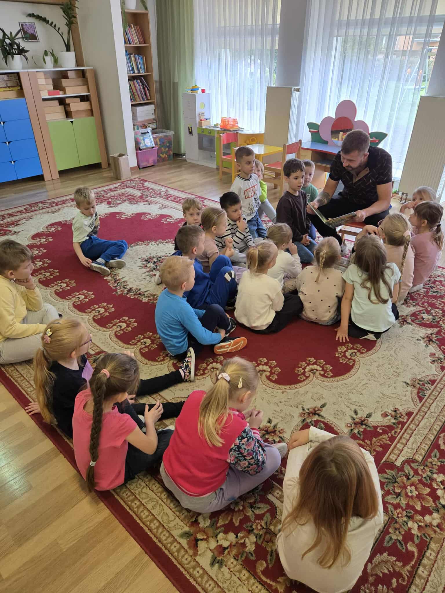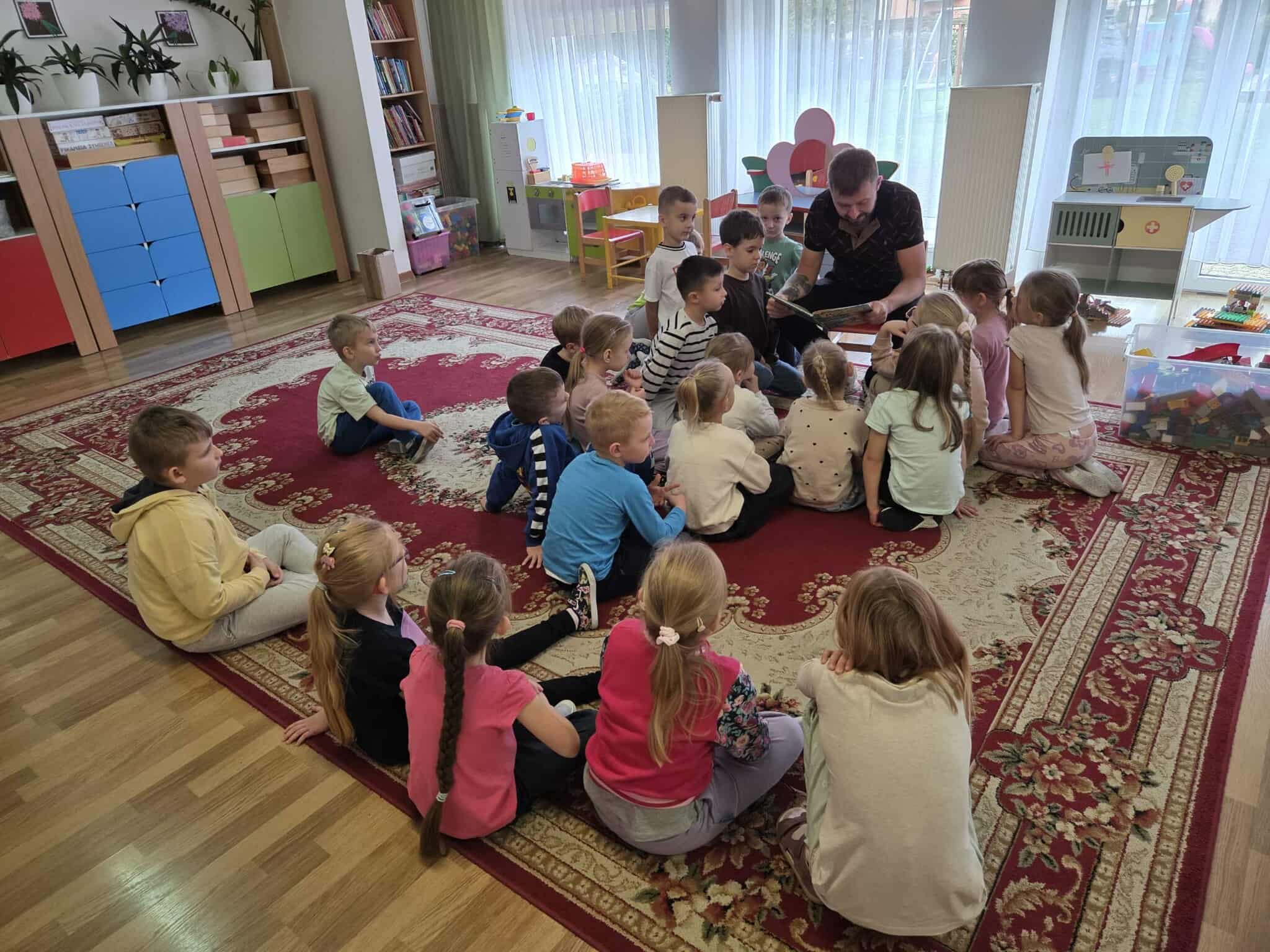 15 października naszą grupę Motylków odwiedził tata Tosi-Pan Marcin. Z ogromnym zaangażowaniem przeczytał wszystkim fragmenty z książeczki pt."Misia i jej mali pacjenci". Dzieci uważnie słuchały i potem trafnie odpowiadały na zadane pytania. Bardzo dziękujemy naszemu gościowi za poświęcony przedszkolakom czas.