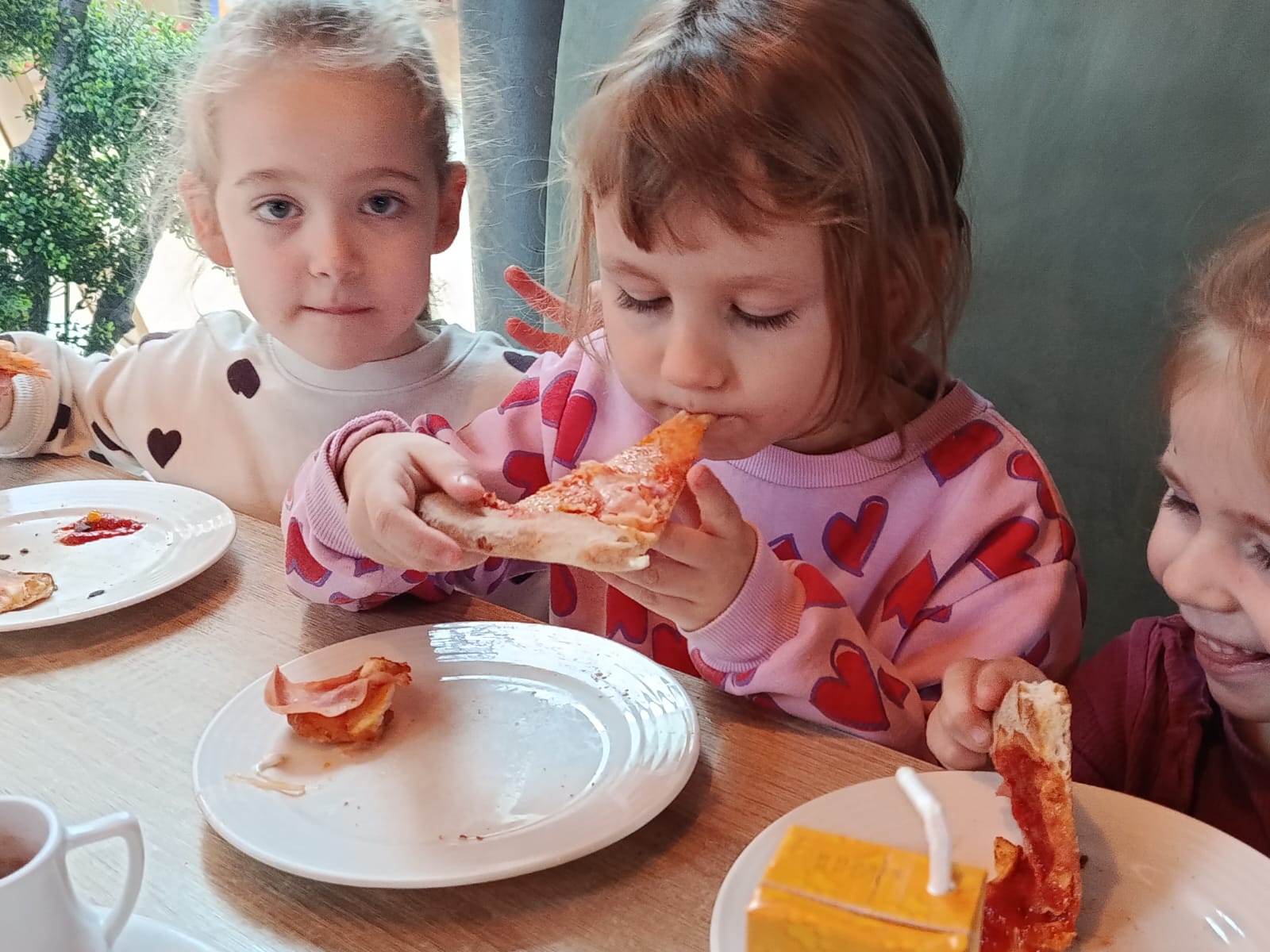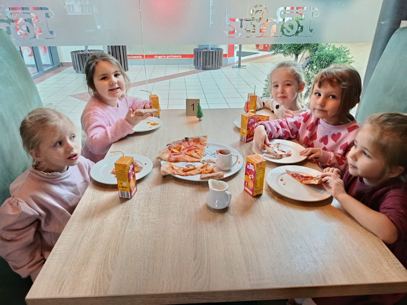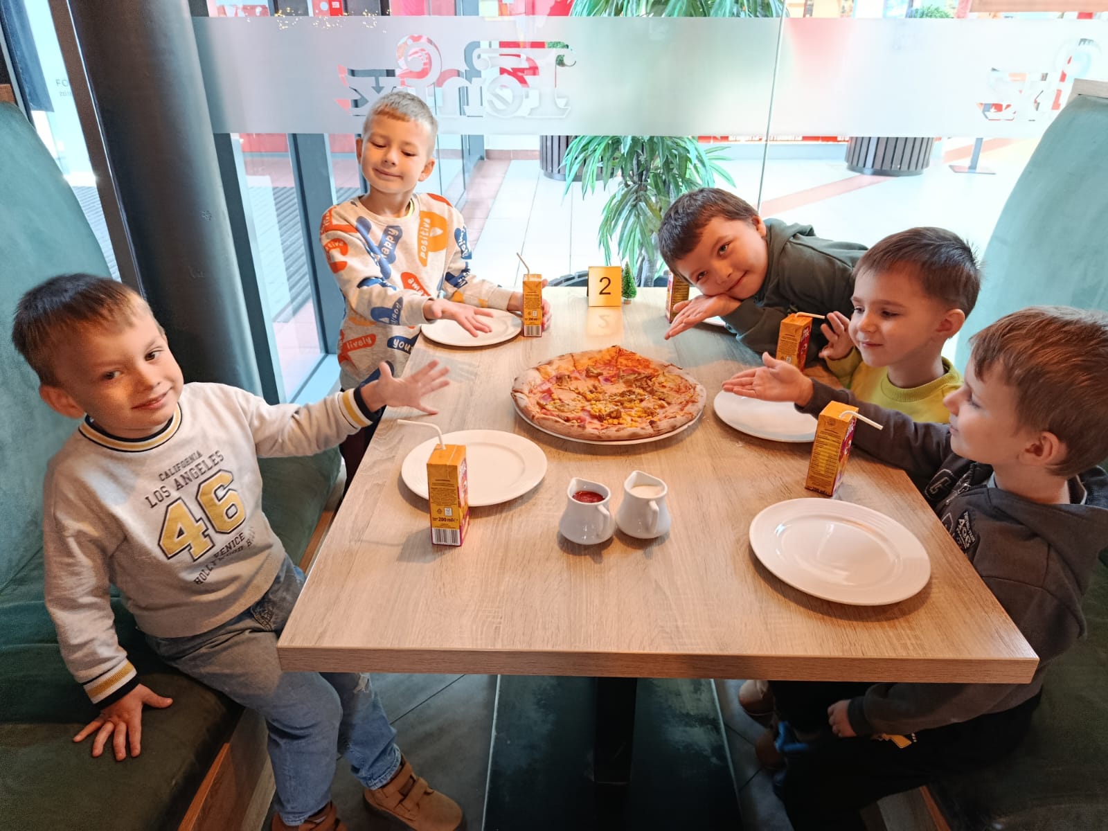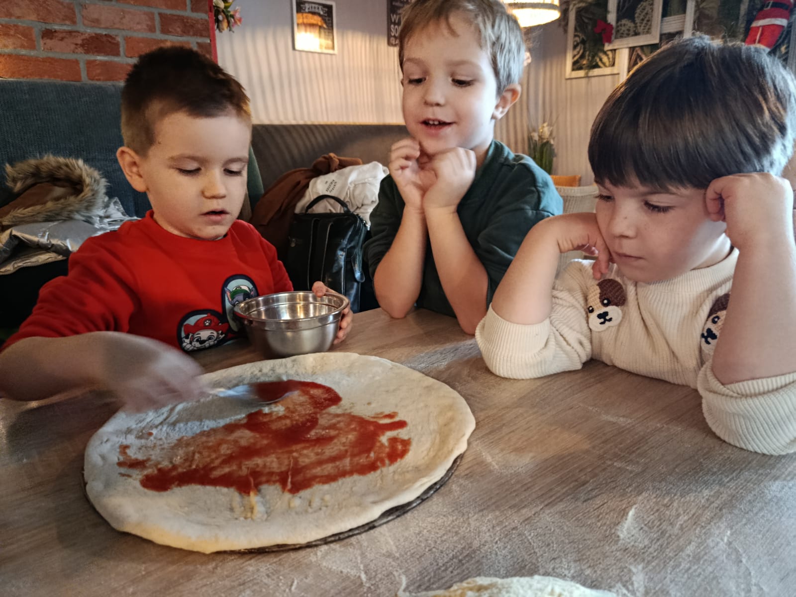 Przedszkolaki z grupy Słoneczka uczestniczyły w warsztatach kulinarnych w pizzerii Fenix. Najpierw przedszkolaki poznały historię pizzy. Obserwowały proces jej powstawania podczas pokazu przeprowadzonego przez pizzermana. Następnie przedszkolaki samodzielnie wykonały pizzę z ulubionymi dodatkami. Po upieczeniu była prawdziwa uczta, pizza smakowała wybornie! Dzieci były bardzo zaciekawione i zachwycone efektem końcowym. To były super doświadczenia.