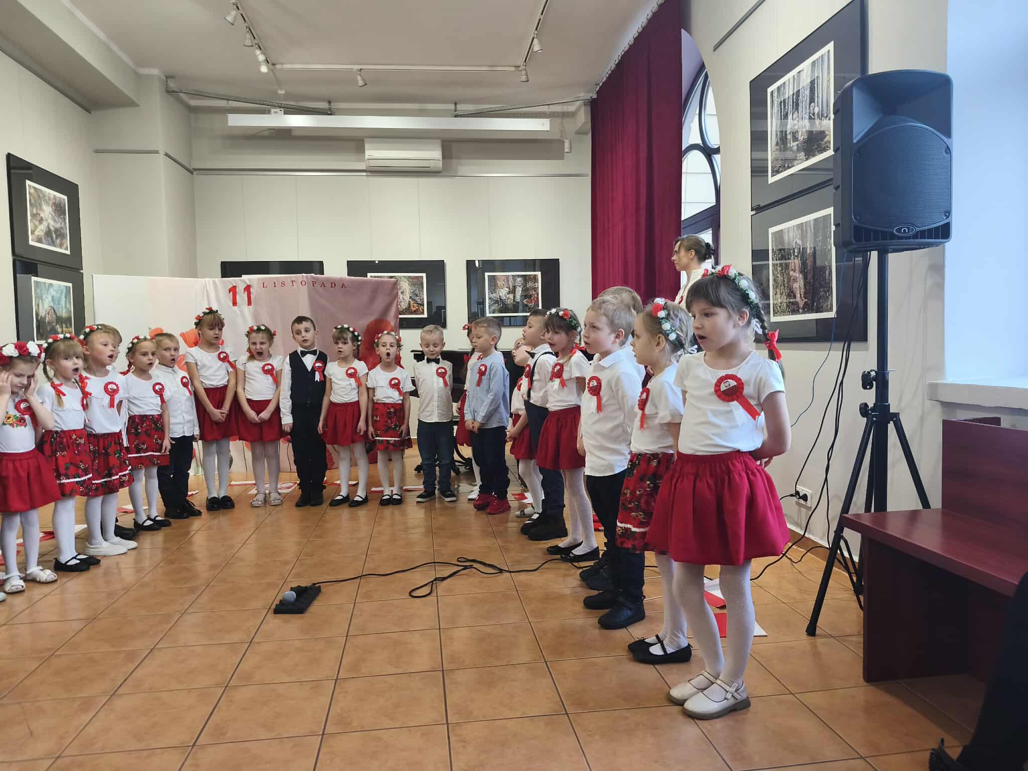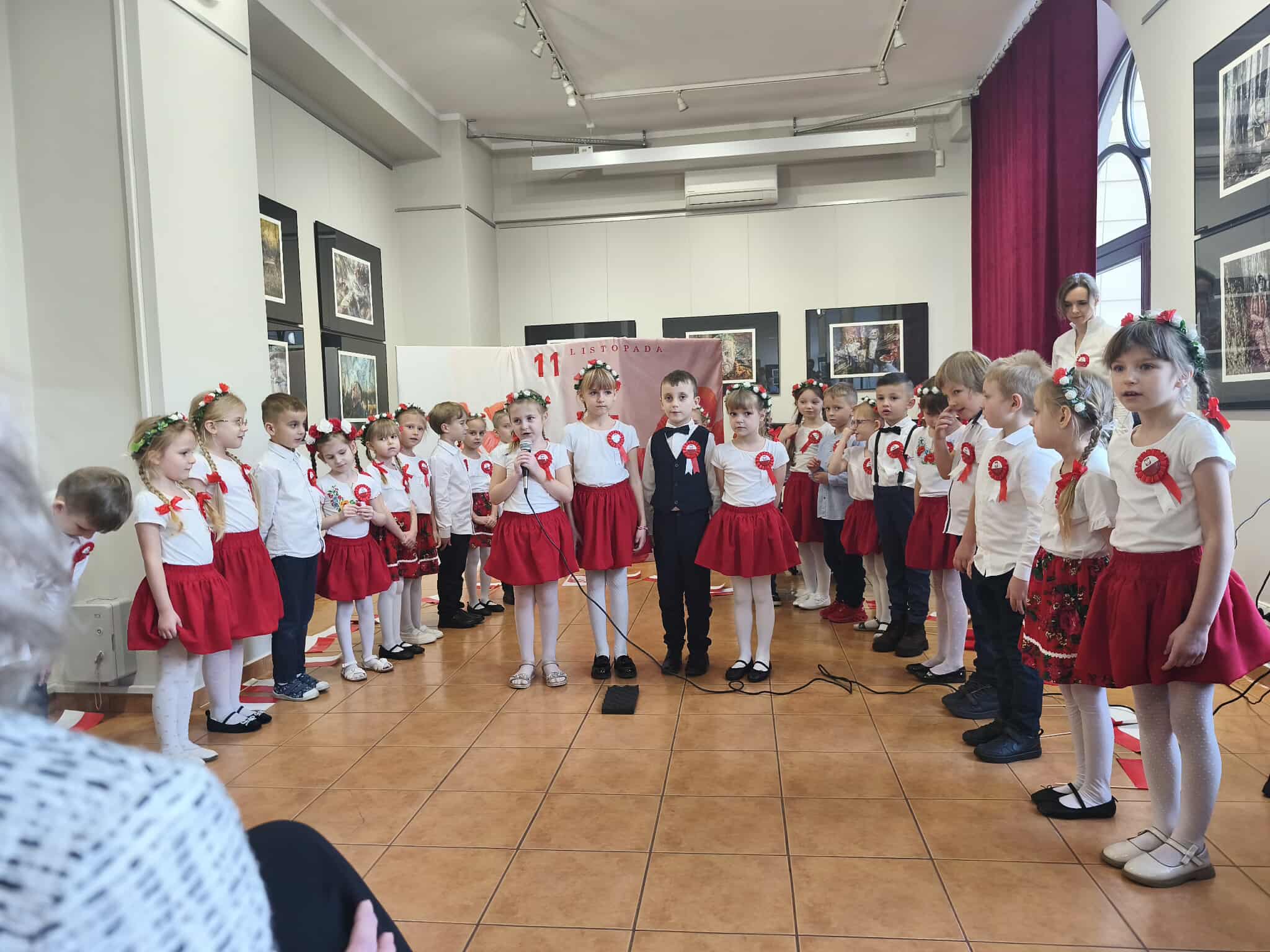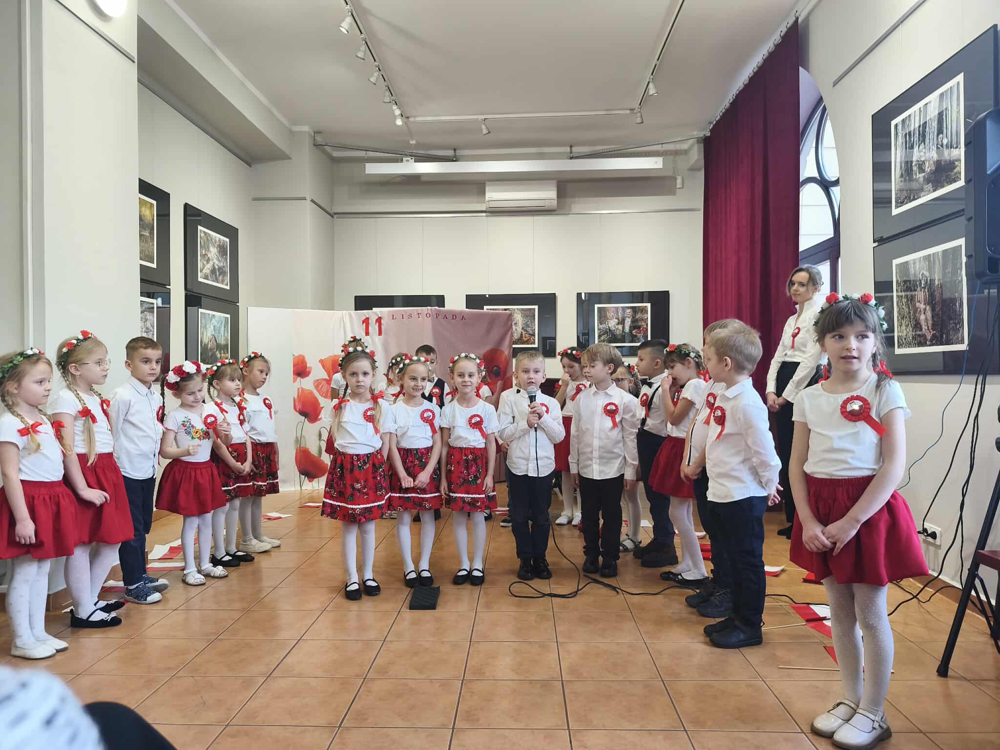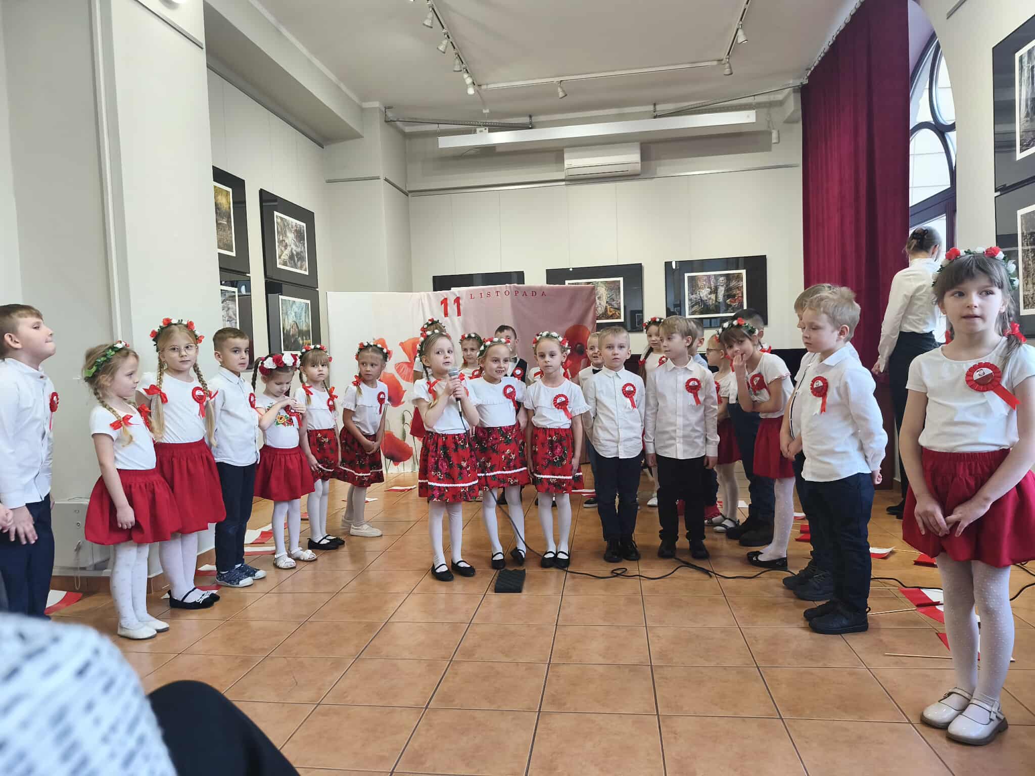 Dlatego też 13 listopada dzieci z grupy Motylki i Promyczki zaprosiły Panią Dyrektor, swoich rodziców i bliskich na uroczyste przedstawienie z okazji Narodowego Święta Niepodległości, która odbyła się w Muzeum Regionalnym. Podczas występu dzieci zaprezentowały montaż słowno-muzyczny o treściach patriotycznych, recytowały wiersze o ojczyźnie. Wyśpiewane pieśni patriotyczne opowiadały o umiłowaniu do Polski i do symboli narodowych. Nie zabrakło również układu tanecznego pt.„ Tańczymy dla Polski”. Występ przedszkolaków, ich przygotowanie, zaangażowanie, postawa patriotyczna i artystyczny talent nagrodzony został gromkimi brawami przez wszystkich, a szczególnie przez Panią Dyrektor naszego przedszkola, Pania Dyrektor Muzeum i Panią Wiceprezydent Miasta Radomsko, która także zaszczyciła nas swoją obecnością na uroczystości. Wszystkie dzieci tego ważnego dnia wyglądały odświętnie i uroczyście.