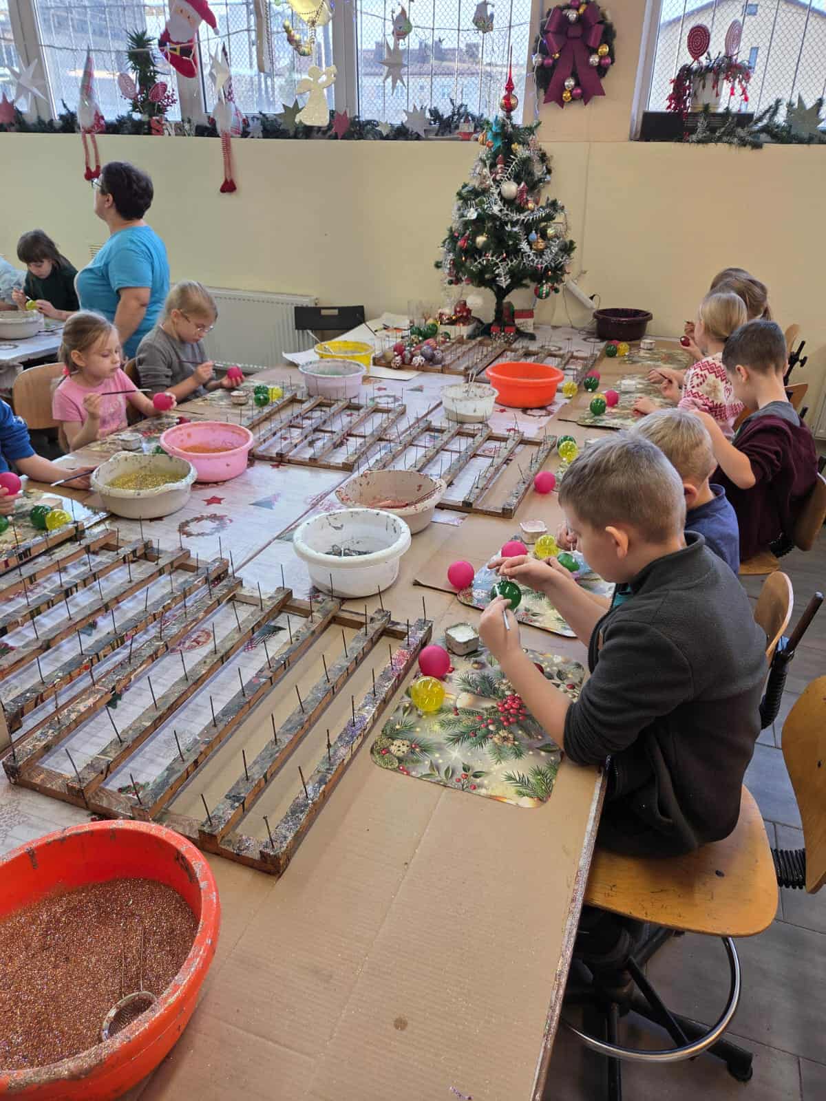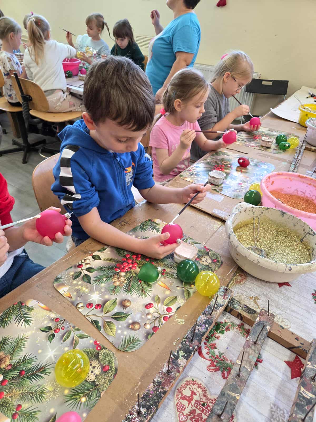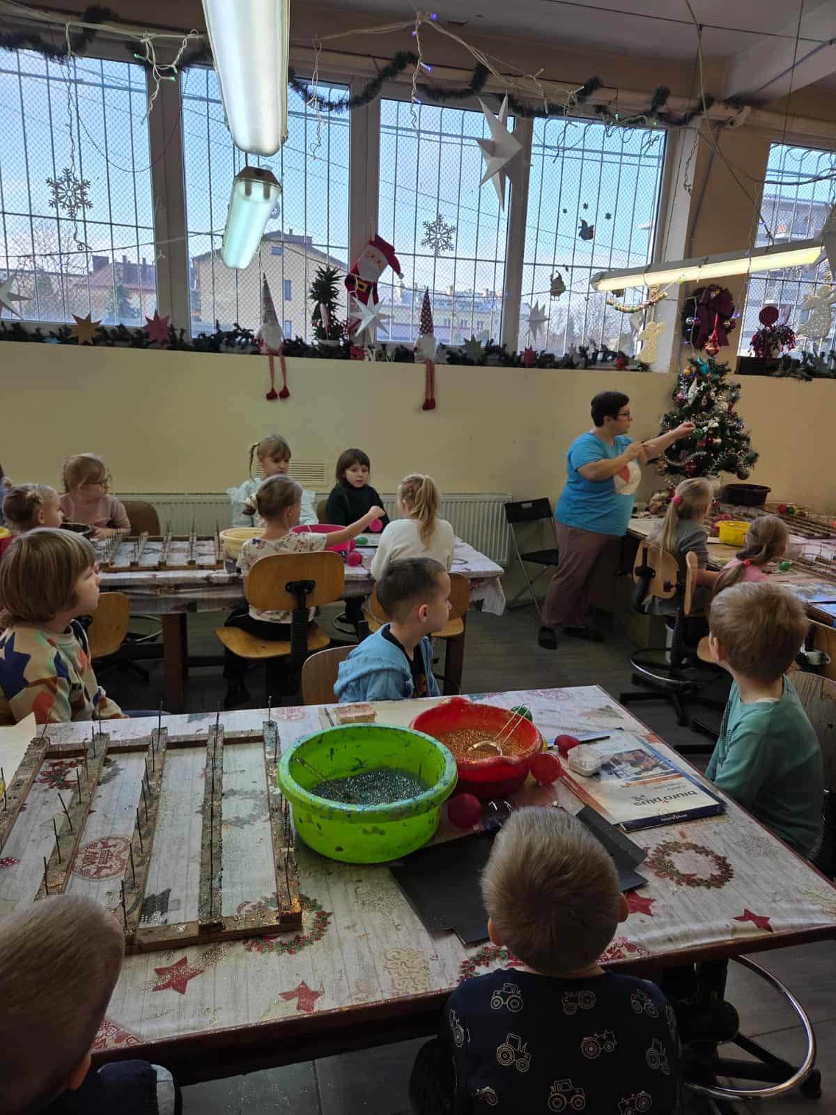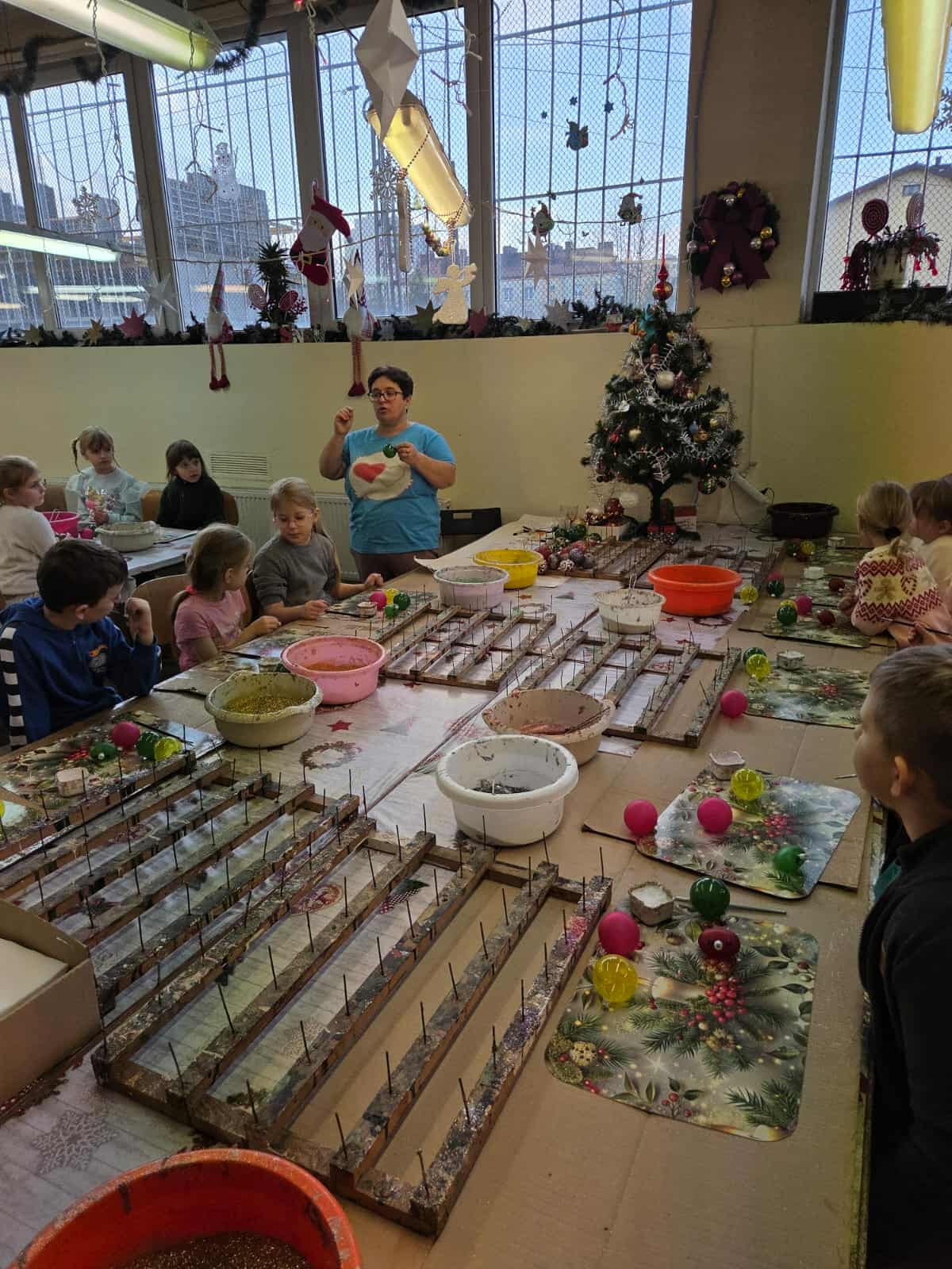 Dzieci z grupy Motylków wraz z wychowawczyniami wybrały się 11 grudnia na wycieczkę do fabryki bombek choinkowych „DEKOR” w Piotrkowie Trybunalskim. Wycieczka została zorganizowana przez rodziców i miała na celu zwiedzanie fabryki, w której produkcja bombek odbywa się ręcznie, a także zapoznanie dzieci z procesem powstawania ozdób choinkowych. Zwiedzanie fabryki obejmowało cały proces wytwórczy, począwszy od szklanej rurki do uzyskania ręcznie malowanych, pięknie zdobionych bombek, jakie można zakupić w sklepach. Na koniec wycieczki przygotowano dla wszystkich dzieci warsztaty z samodzielnego malowania bombek. Każde dziecko mogło pomalować cztery bombki i ozdobić je wybranymi dowolnie produktami ozdobnymi. Wszystkie bombki były pakowane w specjalne podpisane pudełko po to, aby każde dziecko mogło je ze sobą zabrać na pamiątkę. Dzieci wróciły do przedszkola zadowolone i pełne niezapomnianych wrażeń. Wizyta w takim miejscu niewątpliwie wprowadziła nas w świąteczny nastrój .Tegoroczne święta na pewno będą wspaniałe, bowiem na choinkach dzieci będą ich piękne, ręcznie zdobione kolorowe bombki.To była udana wycieczka.