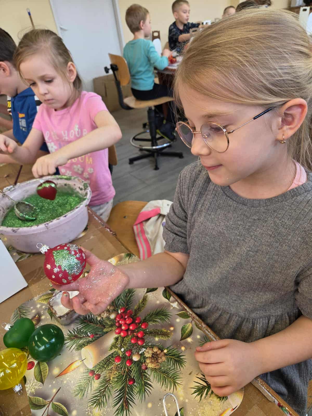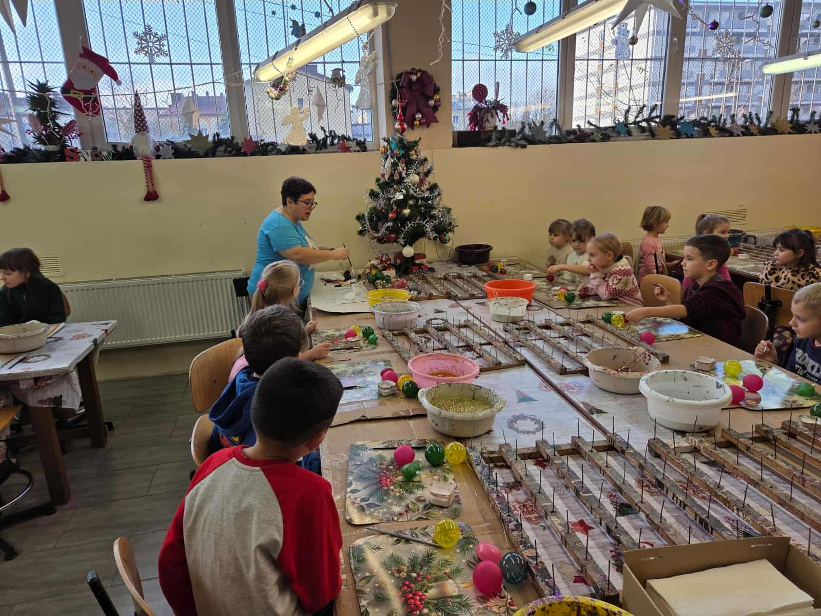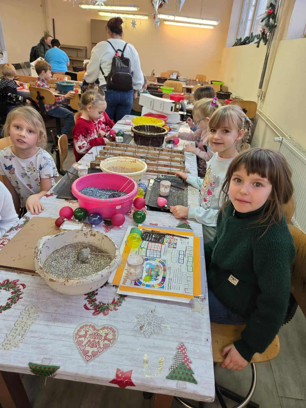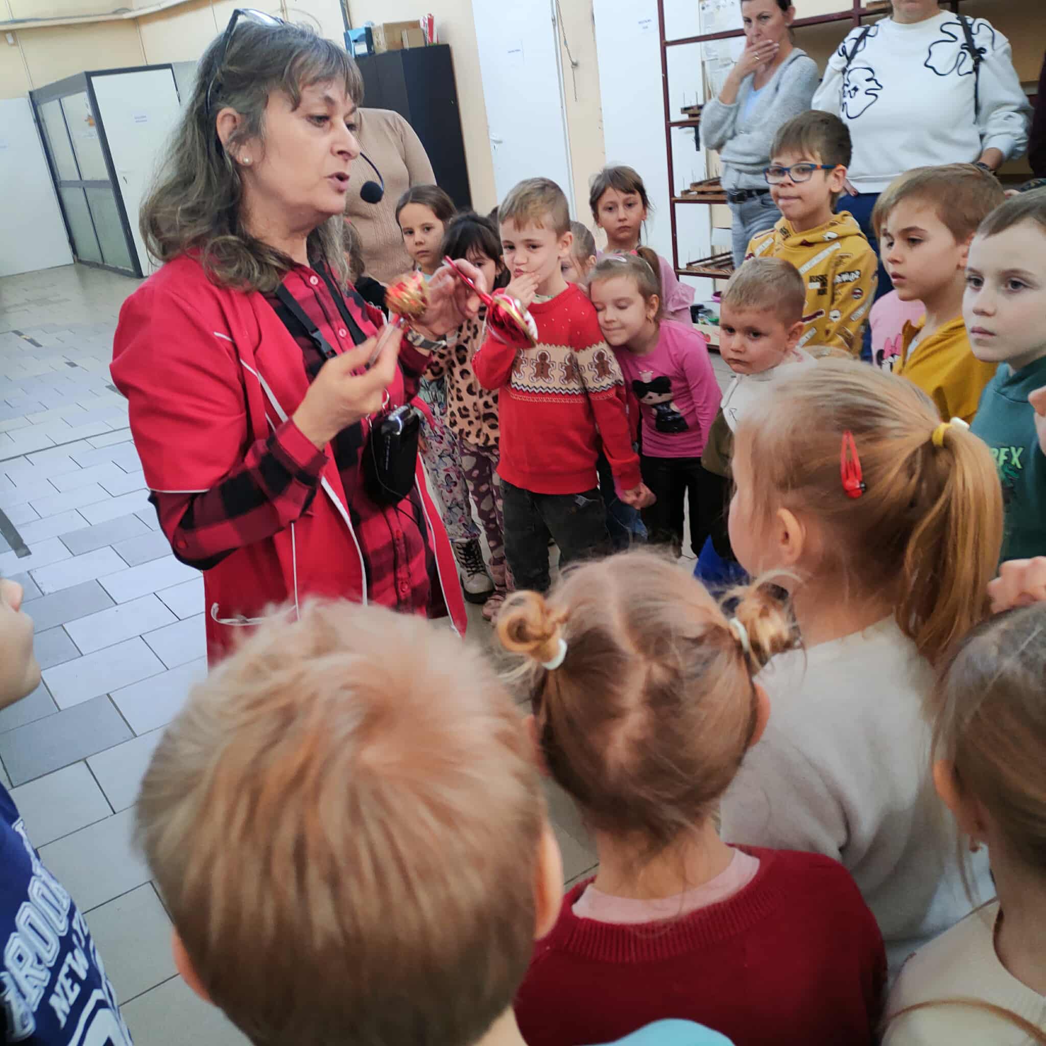 Dzieci z grupy Motylków wraz z wychowawczyniami wybrały się 11 grudnia na wycieczkę do fabryki bombek choinkowych „DEKOR” w Piotrkowie Trybunalskim. Wycieczka została zorganizowana przez rodziców i miała na celu zwiedzanie fabryki, w której produkcja bombek odbywa się ręcznie, a także zapoznanie dzieci z procesem powstawania ozdób choinkowych. Zwiedzanie fabryki obejmowało cały proces wytwórczy, począwszy od szklanej rurki do uzyskania ręcznie malowanych, pięknie zdobionych bombek, jakie można zakupić w sklepach. Na koniec wycieczki przygotowano dla wszystkich dzieci warsztaty z samodzielnego malowania bombek. Każde dziecko mogło pomalować cztery bombki i ozdobić je wybranymi dowolnie produktami ozdobnymi. Wszystkie bombki były pakowane w specjalne podpisane pudełko po to, aby każde dziecko mogło je ze sobą zabrać na pamiątkę. Dzieci wróciły do przedszkola zadowolone i pełne niezapomnianych wrażeń. Wizyta w takim miejscu niewątpliwie wprowadziła nas w świąteczny nastrój .Tegoroczne święta na pewno będą wspaniałe, bowiem na choinkach dzieci będą ich piękne, ręcznie zdobione kolorowe bombki.To była udana wycieczka.