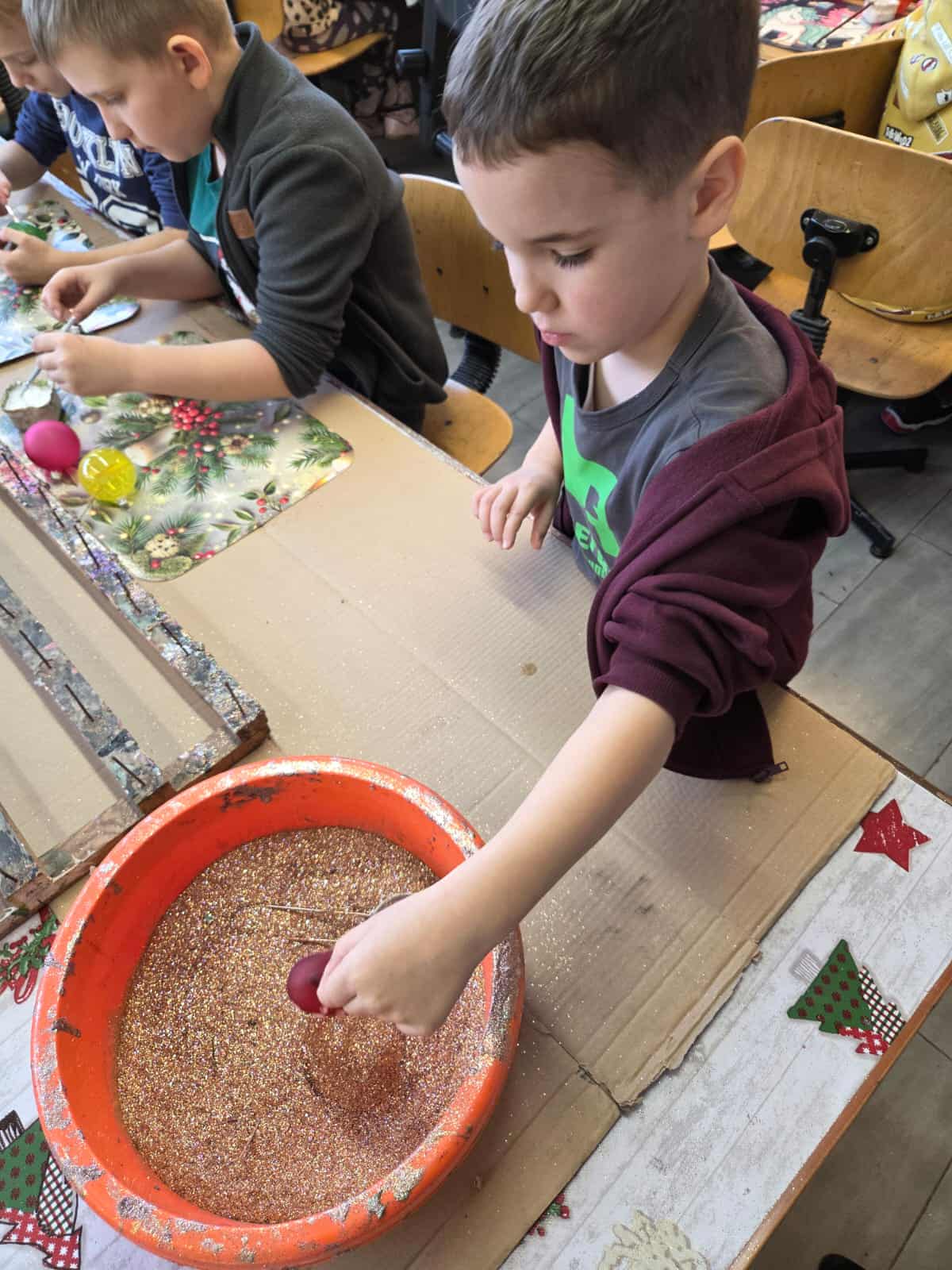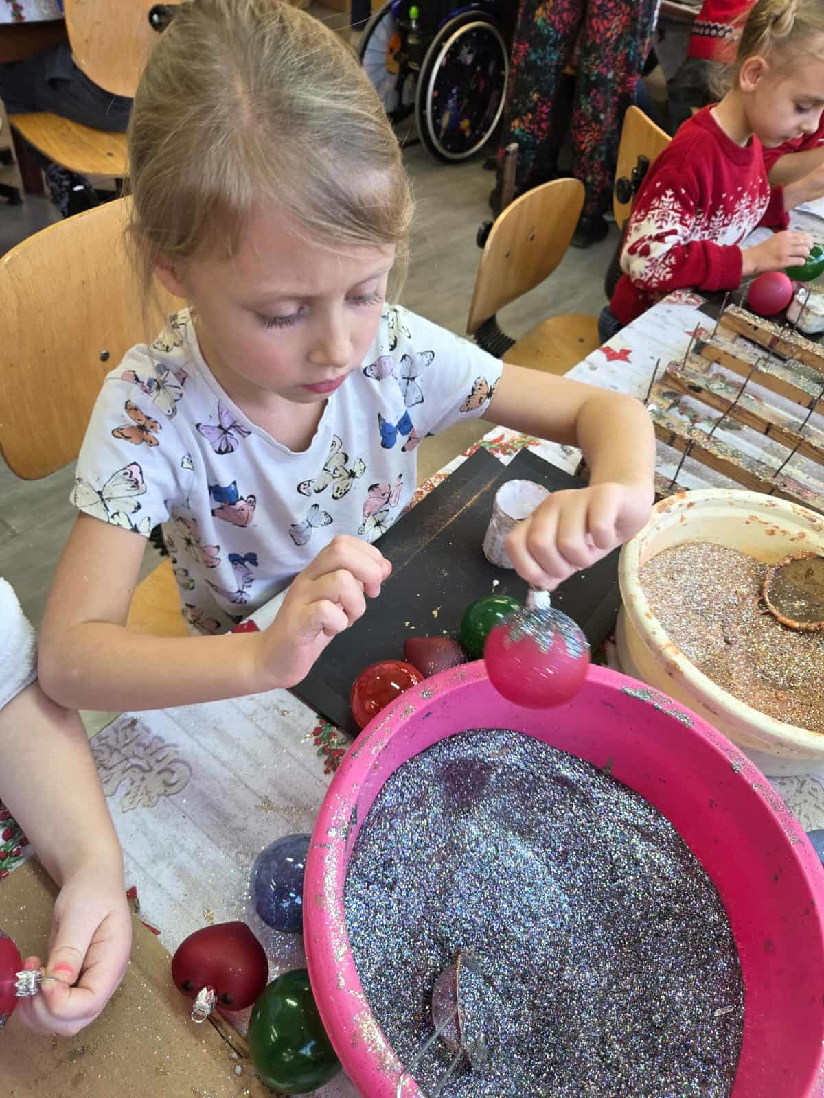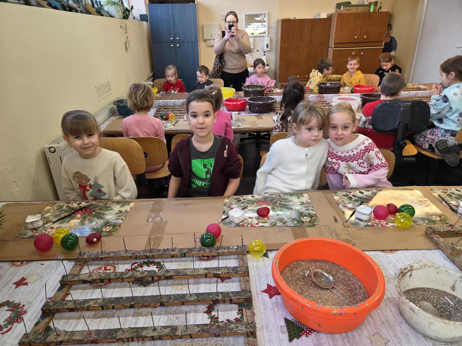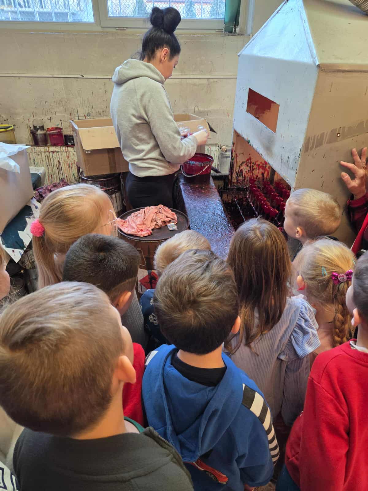Dzieci z grupy Motylków wraz z wychowawczyniami wybrały się 11 grudnia na wycieczkę do fabryki bombek choinkowych „DEKOR” w Piotrkowie Trybunalskim. Wycieczka została zorganizowana przez rodziców i miała na celu zwiedzanie fabryki, w której produkcja bombek odbywa się ręcznie, a także zapoznanie dzieci z procesem powstawania ozdób choinkowych. Zwiedzanie fabryki obejmowało cały proces wytwórczy, począwszy od szklanej rurki do uzyskania ręcznie malowanych, pięknie zdobionych bombek, jakie można zakupić w sklepach. Na koniec wycieczki przygotowano dla wszystkich dzieci warsztaty z samodzielnego malowania bombek. Każde dziecko mogło pomalować cztery bombki i ozdobić je wybranymi dowolnie produktami ozdobnymi. Wszystkie bombki były pakowane w specjalne podpisane pudełko po to, aby każde dziecko mogło je ze sobą zabrać na pamiątkę. Dzieci wróciły do przedszkola zadowolone i pełne niezapomnianych wrażeń. Wizyta w takim miejscu niewątpliwie wprowadziła nas w świąteczny nastrój .Tegoroczne święta na pewno będą wspaniałe, bowiem na choinkach dzieci będą ich piękne, ręcznie zdobione kolorowe bombki.To była udana wycieczka.